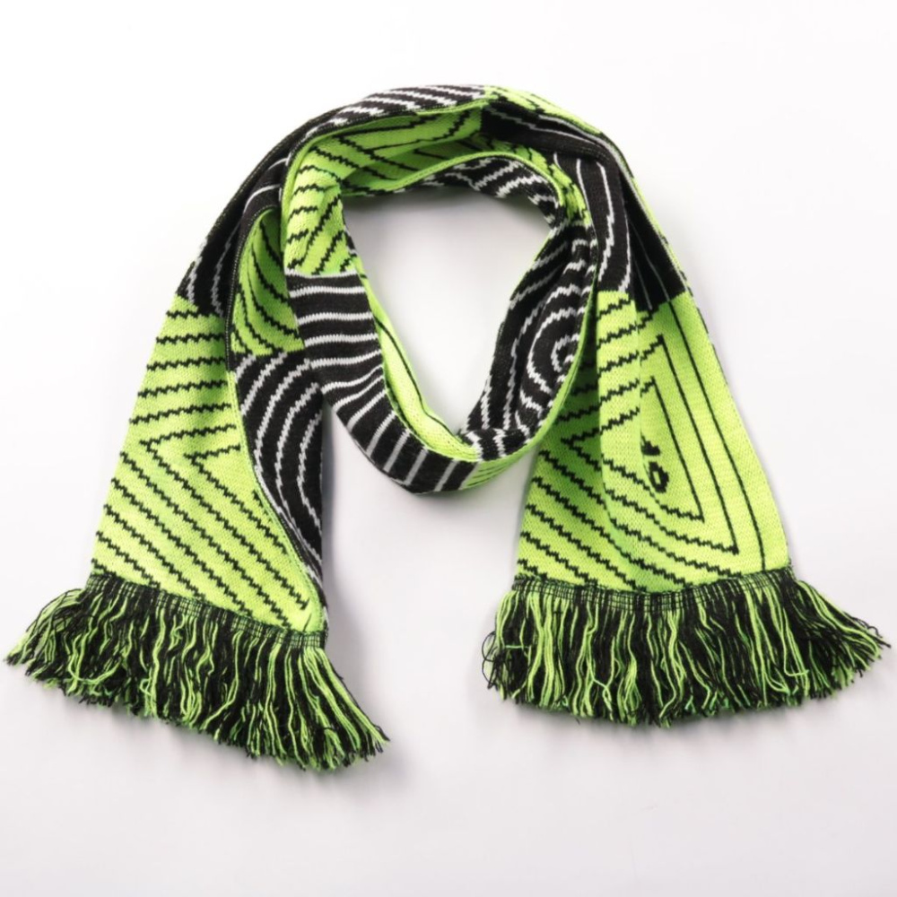 Вязаный шарф Diehard Custom в ярком зелёно-чёрном цвете с графичным узором и кисточками. Подойдёт для зимних прогулок и поездок, когда хочется добавить акцент к однотонной одежде. Акриловая пряжа быстро сохнет и проста в уходе (ручная стирка в холодной...
