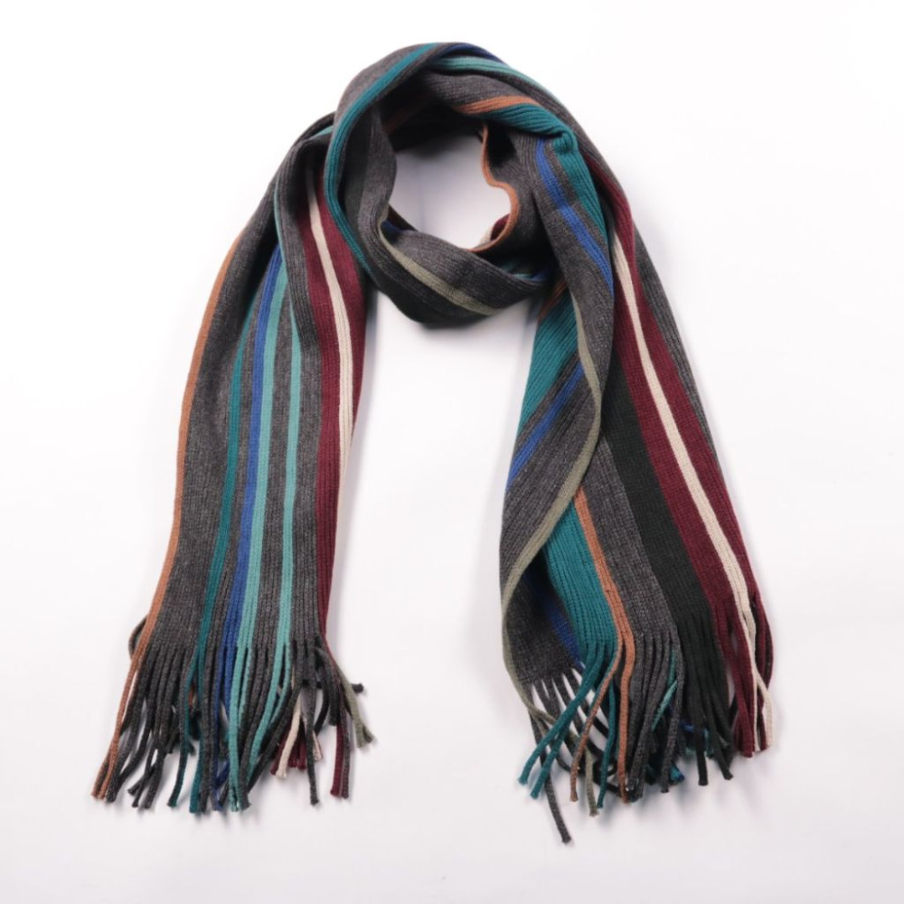 Шарф Cedar Wood State в полоску с кисточками по краям. Подойдёт для повседневных образов в прохладную погоду и легко сочетается с однотонной верхней одеждой. Практичное преимущество — длинный формат, удобно завязывать и закрывать шею от ветра.