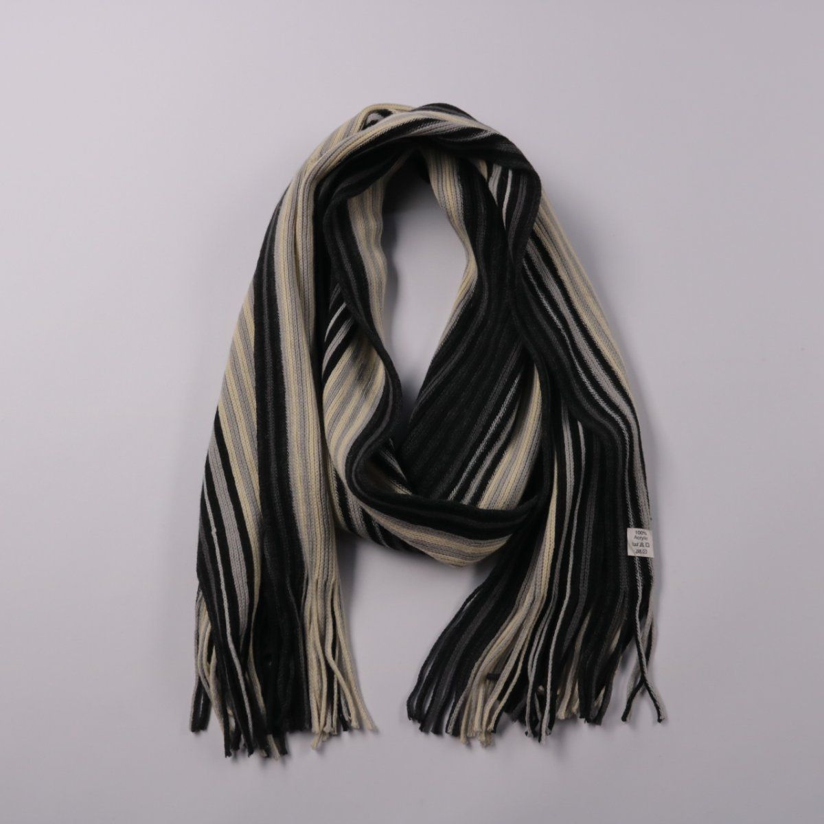 Вязаный шарф в полоску с кисточками, подойдёт мужчинам и женщинам для холодной погоды. Удобен для повседневной носки и легко сочетается с тёмной верхней одеждой. Акриловый состав практичен в уходе и быстро сохнет.