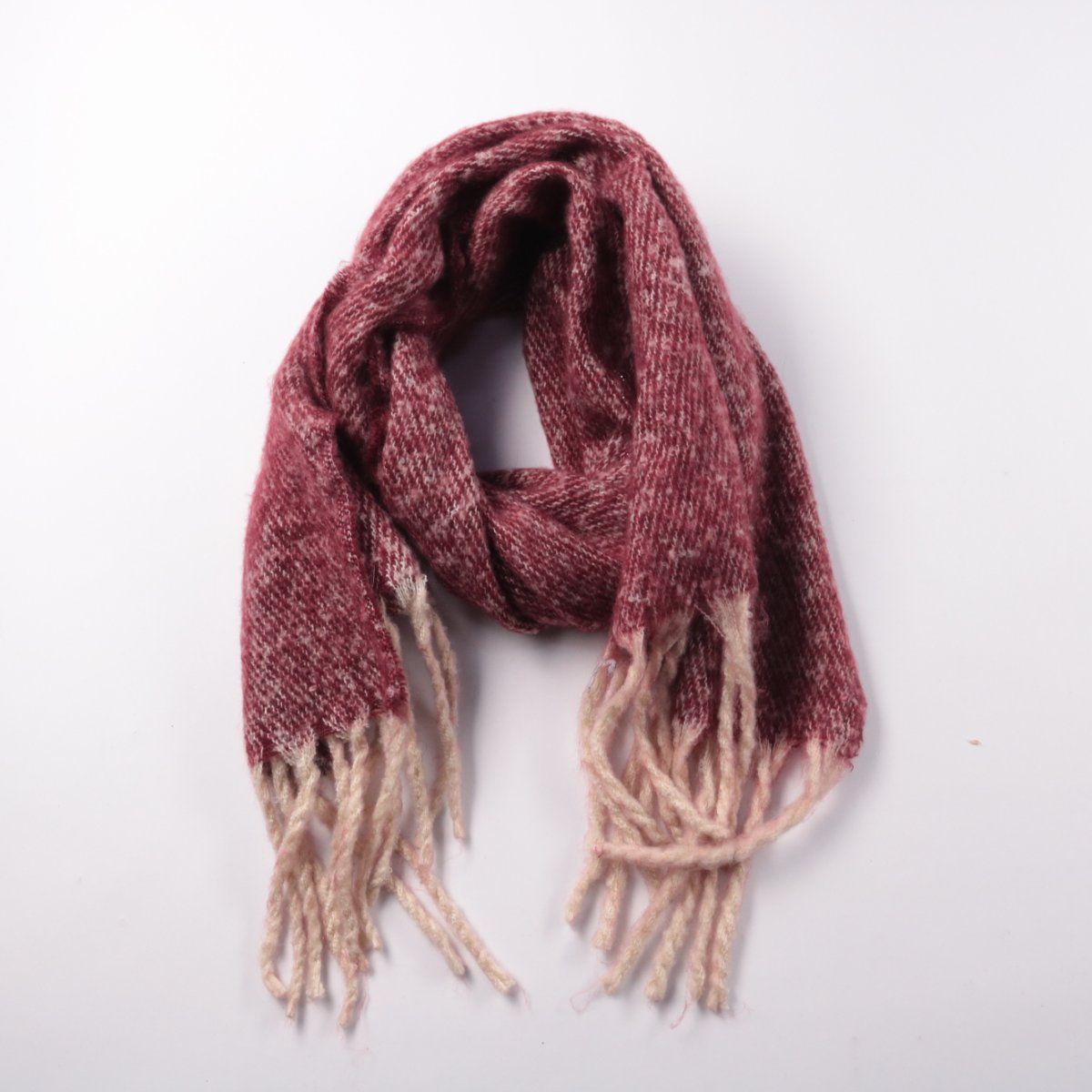 Шарф без указания бренда, фактурная ткань с бахромой по краям. Подойдёт для повседневных образов в прохладную погоду, легко сочетается с пальто и куртками. Тёплый и мягкий, можно носить разными способами за счёт длины.