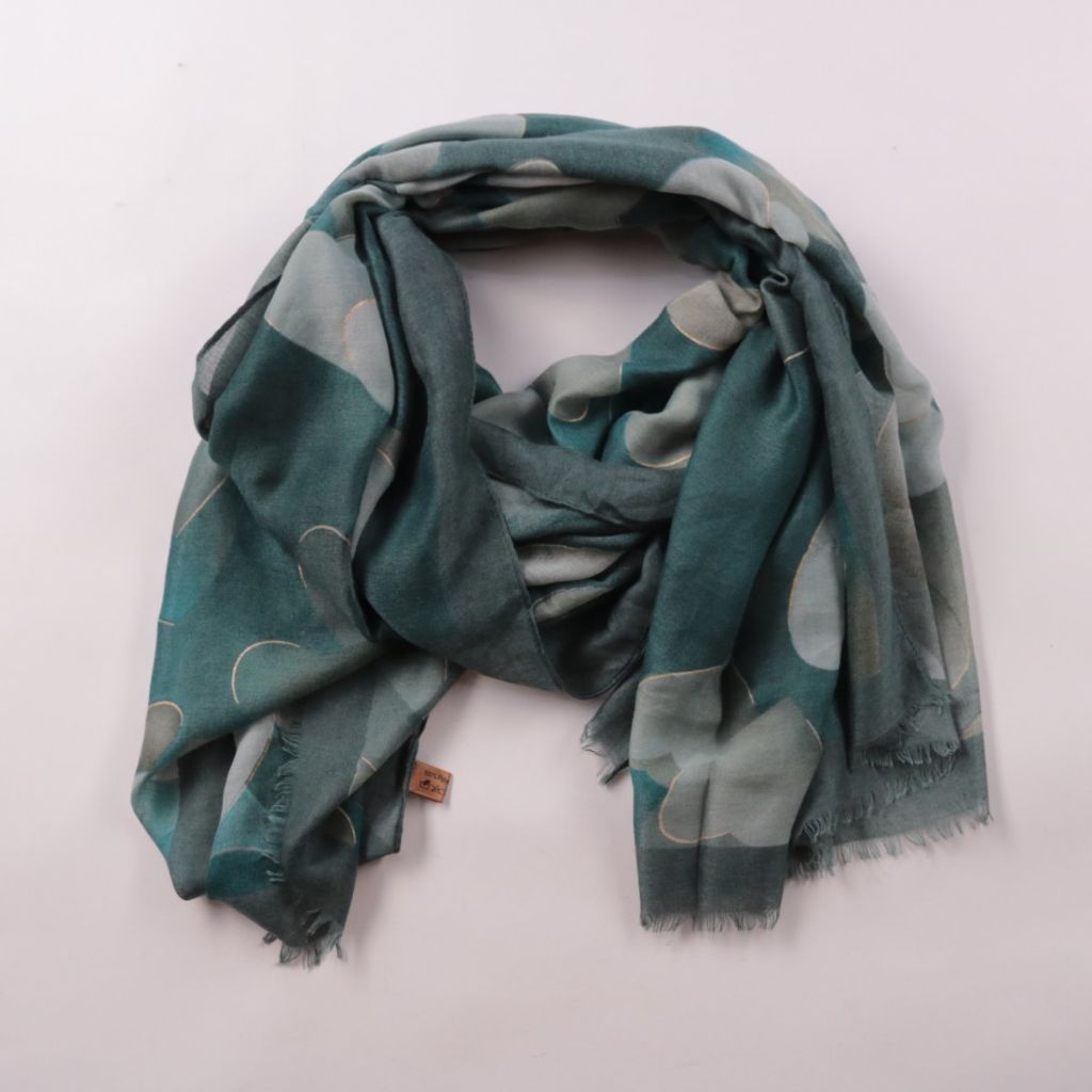 Лёгкий шарф с принтом сердечек и небольшими бахромой по краям. Подойдёт для повседневных образов и в качестве акцента к однотонному пальто или куртке в межсезонье. Тонкая ткань компактно складывается и удобно брать с собой.