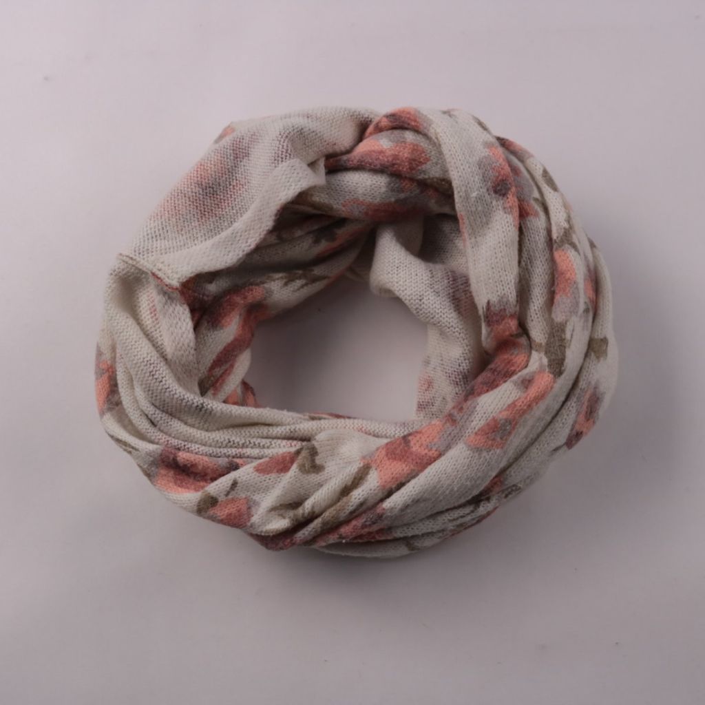 Шарф-снуд H&M с цветочным принтом на светлой основе. Подойдёт для повседневных образов в прохладную погоду и как мягкий акцент к однотонной верхней одежде. Удобен тем, что надевается петлёй и не развязывается.