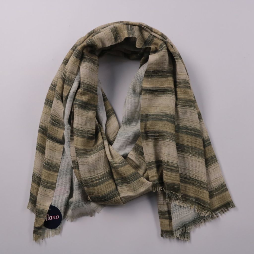 Шарф Viano в полоску, лёгкая ткань с небольшими кисточками по краям. Подойдёт для повседневных образов в прохладную погоду и как акцент к однотонной верхней одежде. Можно носить разными способами за счёт мягкости и хорошей драпировки.