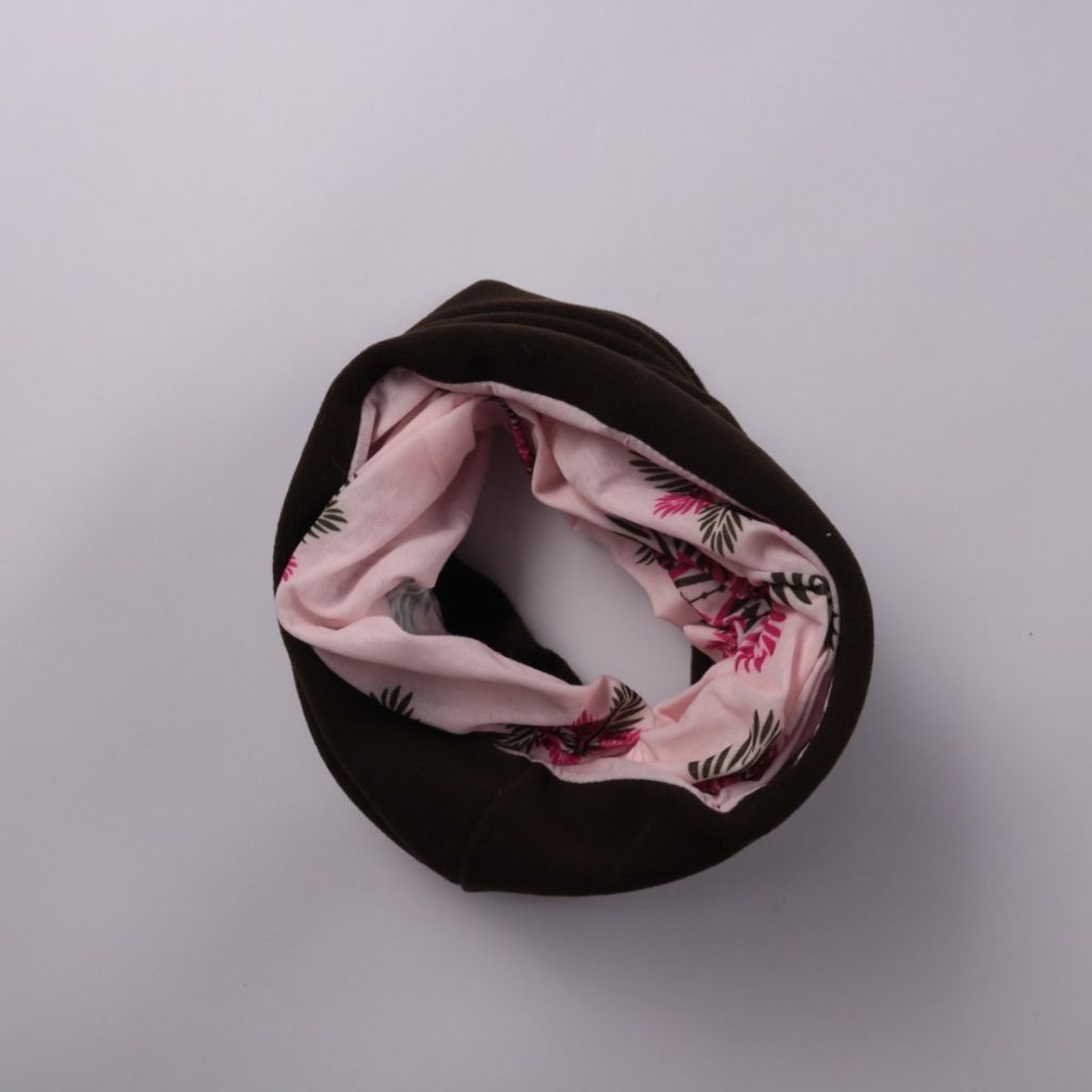 Снуд Crane Sports из мягкого флиса, двусторонний: коричневый с одной стороны и розовый с цветочным принтом с другой. Подойдёт для прогулок и спорта в прохладную погоду, хорошо закрывает шею. Практичное преимущество — легко надевать и быстро сохнет.