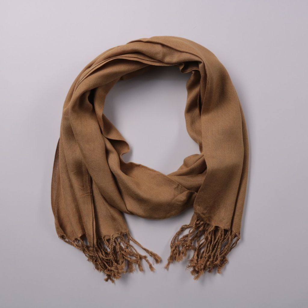 Шарф базового коричневого цвета с кисточками по краям. Подойдёт для повседневных образов в прохладную погоду и легко сочетается с пальто или курткой. Длинный формат позволяет носить разными способами и хорошо защищает шею от ветра.