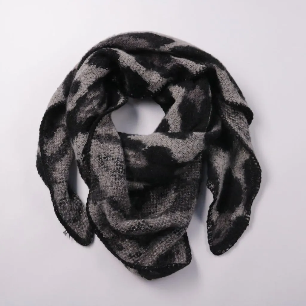 Треугольный платок с анималистичным принтом в серо-чёрной гамме. Подойдёт для демисезона и прохладных вечеров, можно носить на шее или накидывать на плечи. Лёгкий и компактный, удобно брать с собой в сумке.