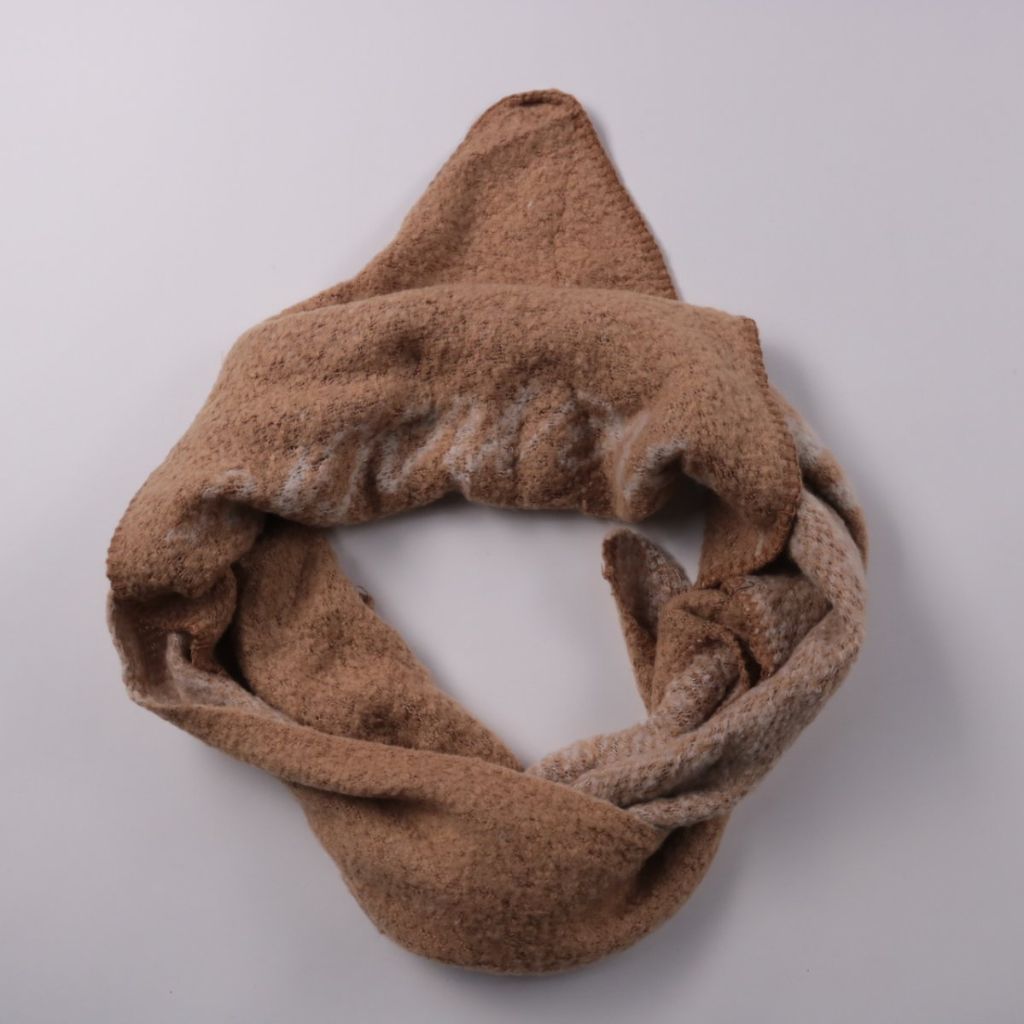 Треугольный платок‑шарф без бренда в коричневом цвете с белым рисунком. Подойдёт для повседневных образов в демисезон, можно носить на шее или как косынку на голову. Мягкая ткань хорошо драпируется и удобно фиксируется узлом.