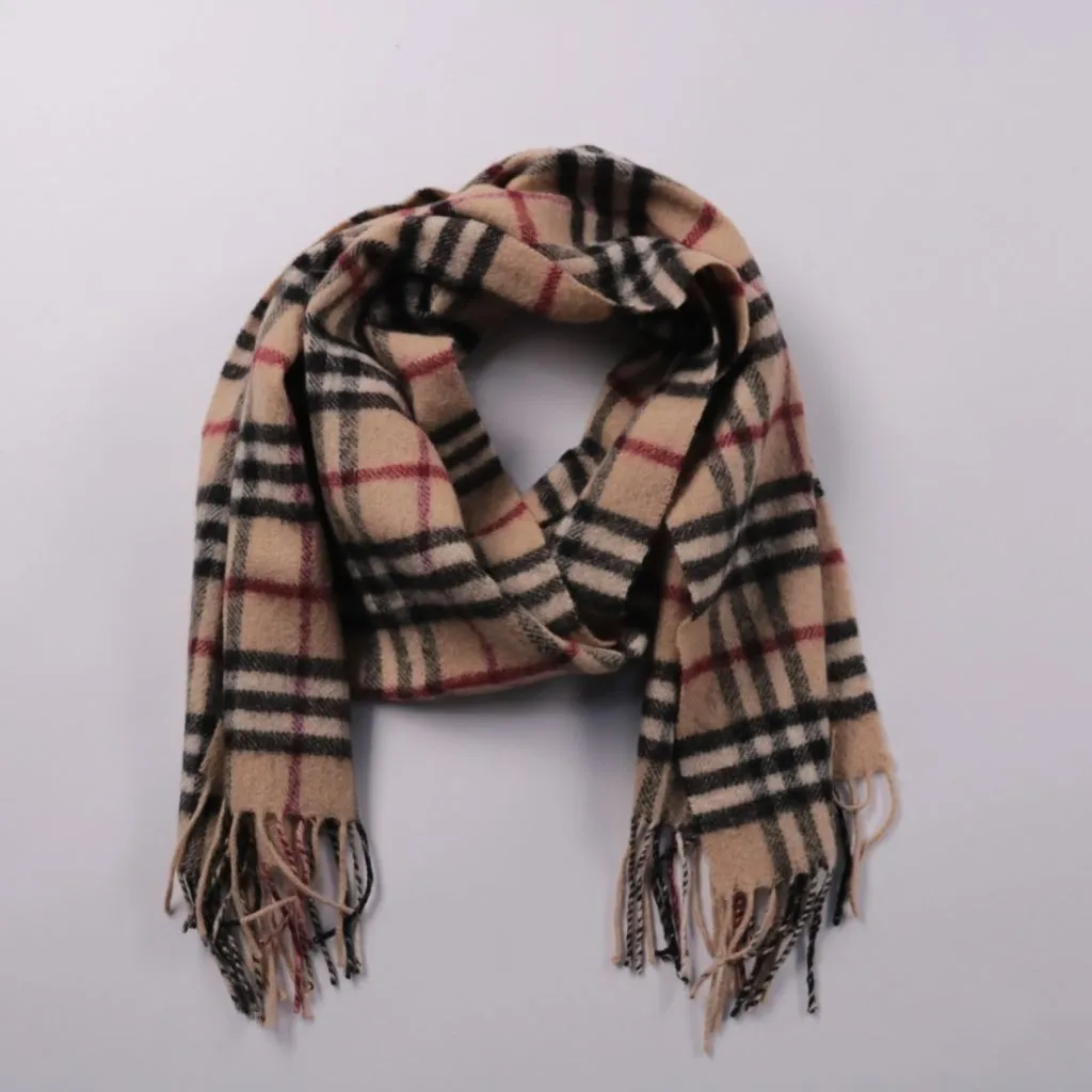 Шарф в клетку без указания бренда, с бахромой по краям. Подойдёт для повседневной носки в холодную погоду и хорошо сочетается с однотонной верхней одеждой. Мягкий и объёмный, удобно укладывается в несколько оборотов.