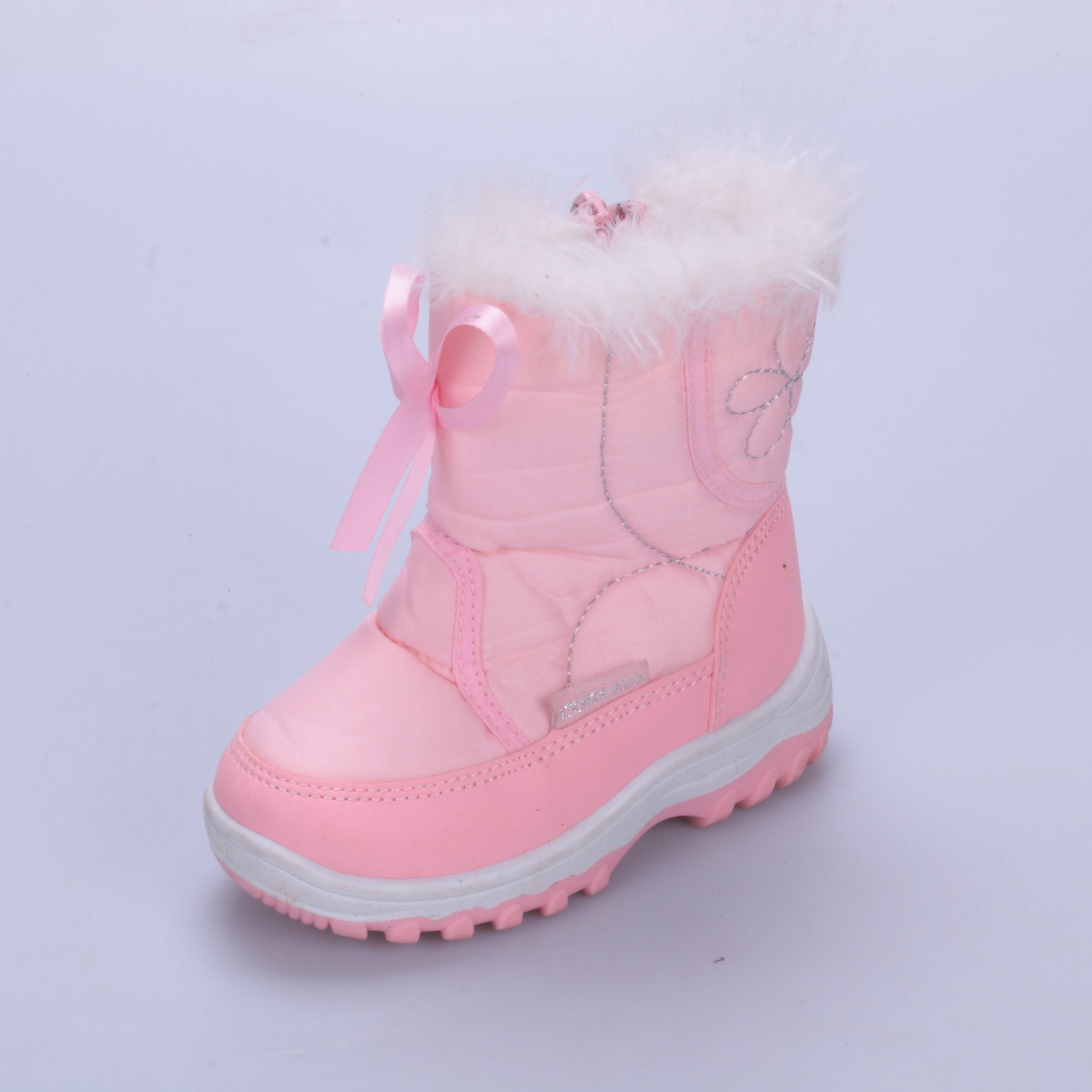 Зимние дутики для девочки в нежно-розовом цвете, с меховой опушкой и декоративным бантиком. Подойдут для прогулок в холодную погоду, удобно застёгиваются на молнию сбоку. Рельефная подошва помогает меньше скользить на снегу.
