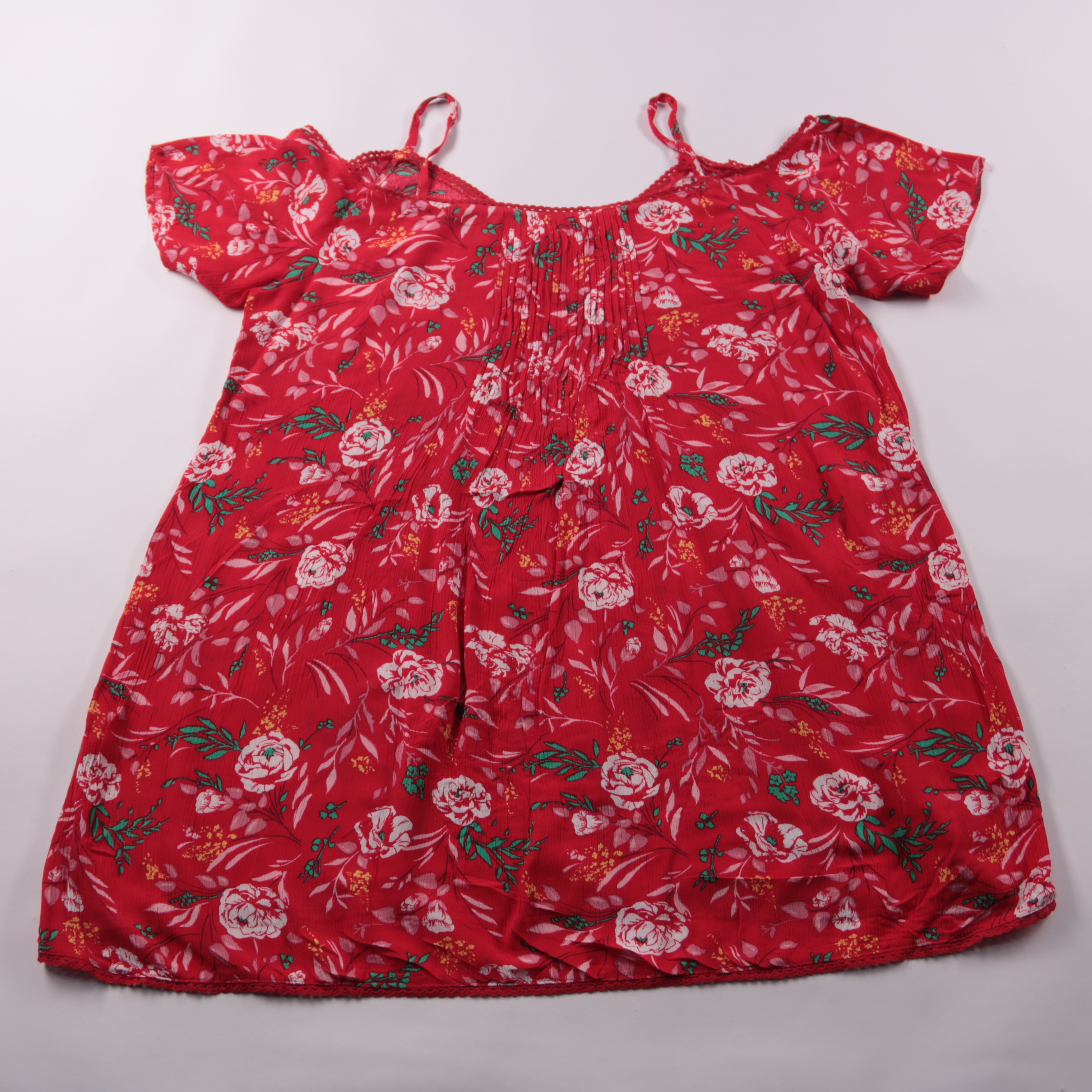 Летнее платье Lily Loves красного цвета с цветочным принтом и короткими рукавами. Подойдёт для прогулок и праздников в тёплую погоду, благодаря свободному крою не стесняет движения. Тонкая вискоза приятно ощущается на коже и быстро сохнет после стирки.