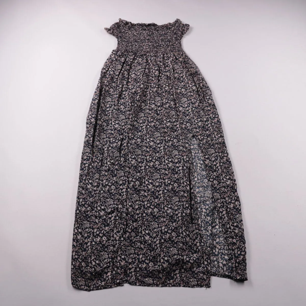 Детское платье с цветочным принтом и присборенным верхом на резинке. Подойдёт для прогулок и летних мероприятий, легко сочетается с босоножками и кедами. Мягкая ткань и свободный крой не стесняют движения.