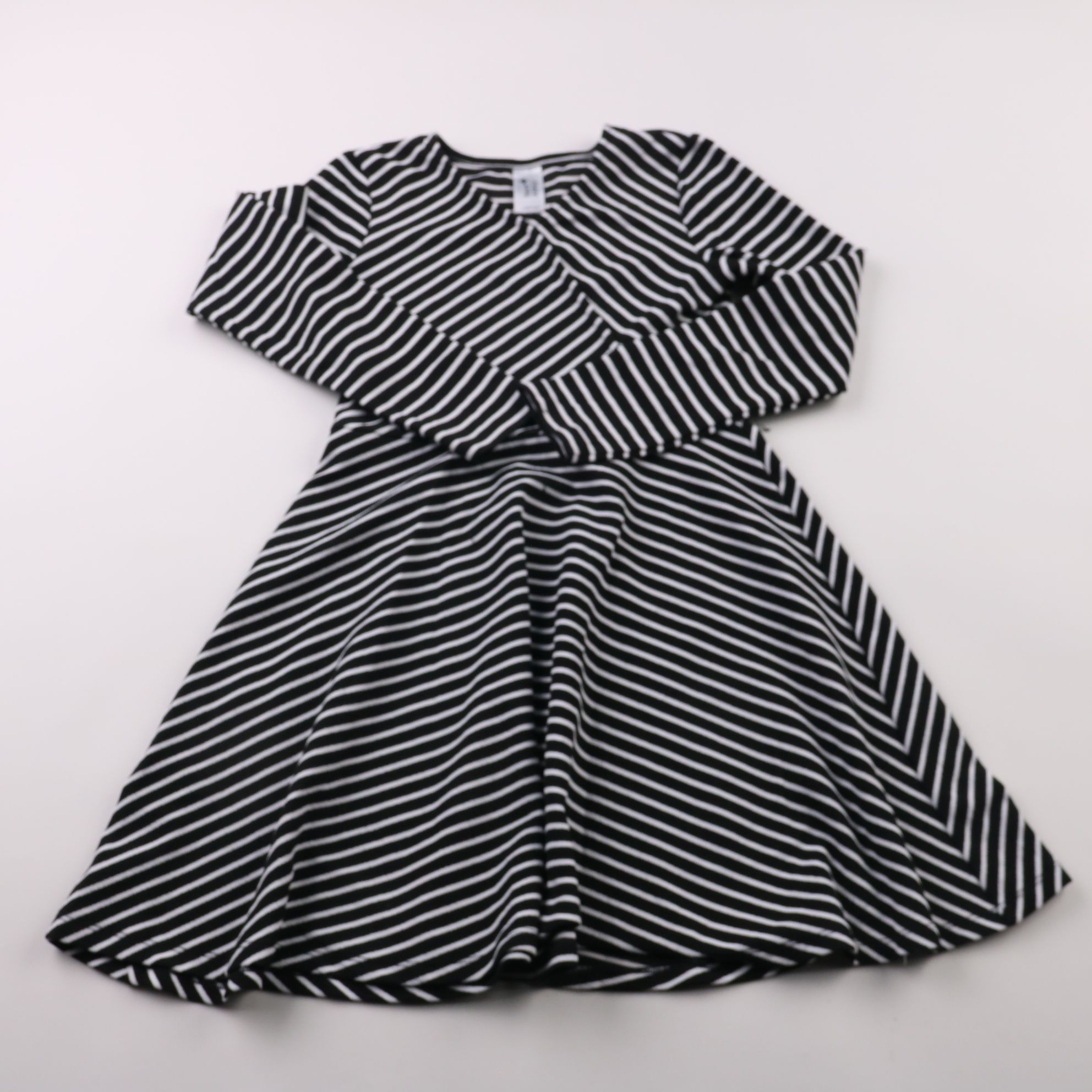 Детское платье Here+There (C&A) в черно-белую полоску, с длинным рукавом и расклешенной юбкой. Подойдет для школы и повседневной носки в прохладную погоду. Мягкий трикотаж хорошо тянется и не сковывает движения.