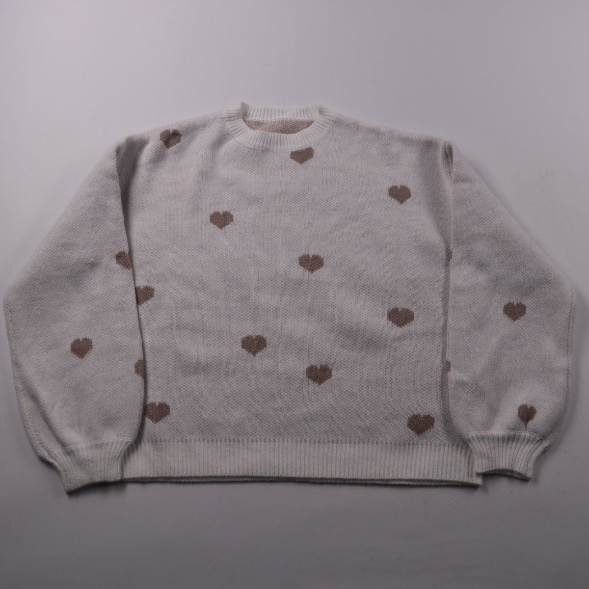 Детский свитер с принтом сердечки, мягкий и приятный к телу. Подойдёт для прогулок и в садик в прохладную погоду, удобно носить как самостоятельный слой или под куртку. Материал практичный и простой в уходе.