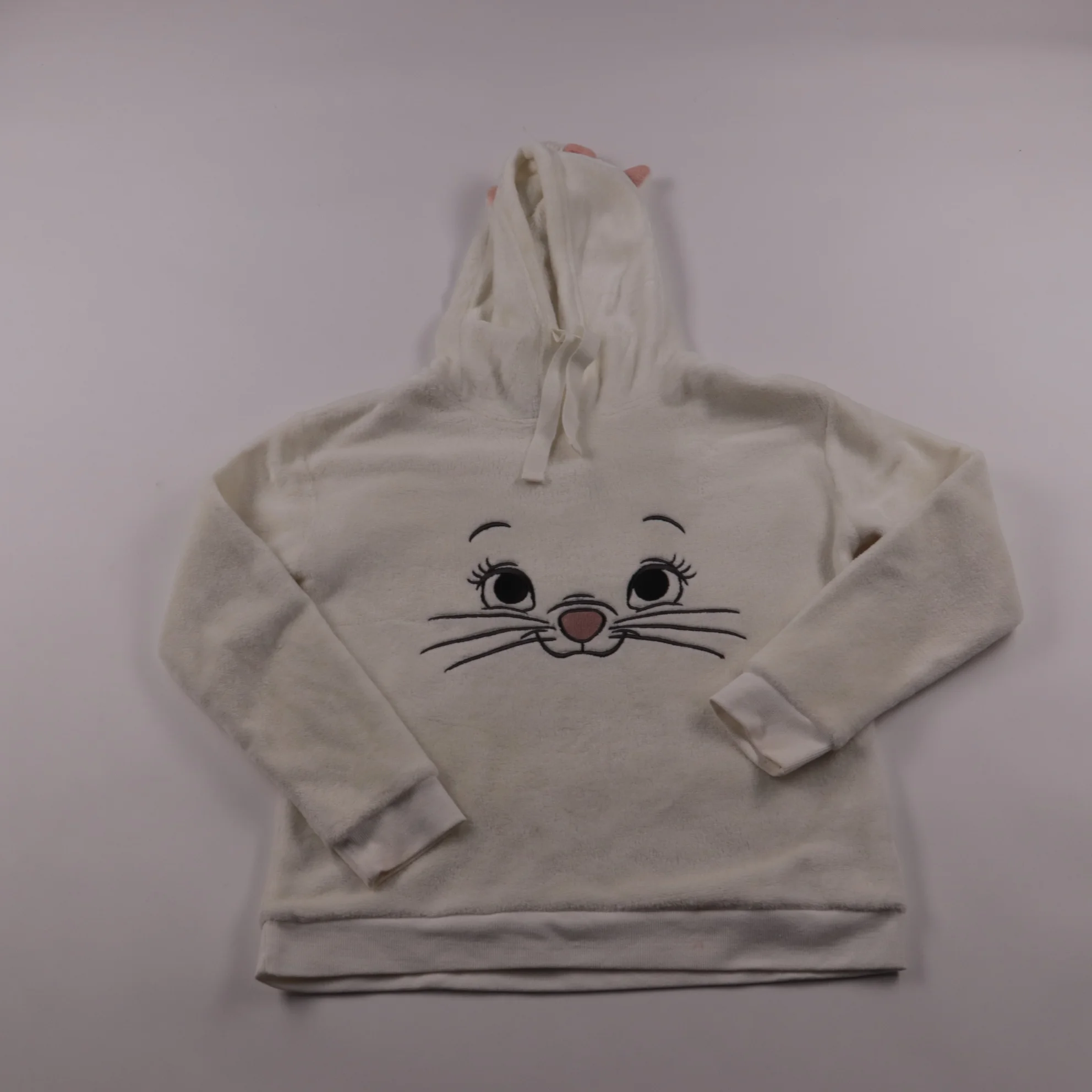 Детская толстовка Disney молочного цвета с капюшоном и принтом мордочки котика. Подойдёт для прогулок и садика в прохладную погоду, удобно носить как второй слой. Мягкий плюшевый материал приятен к телу и хорошо сохраняет тепло.