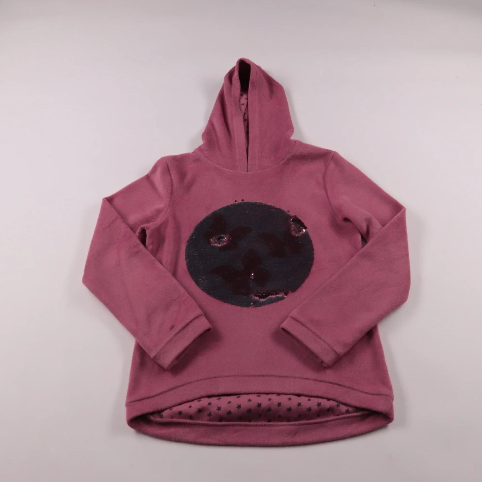 Толстовка с капюшоном YIGGA пыльно-розового цвета с крупным принтом спереди и подкладкой со звёздами. Подойдёт для школы, прогулок и повседневной носки в прохладную погоду. Практична тем, что мягкий материал тянется и не сковывает движения.