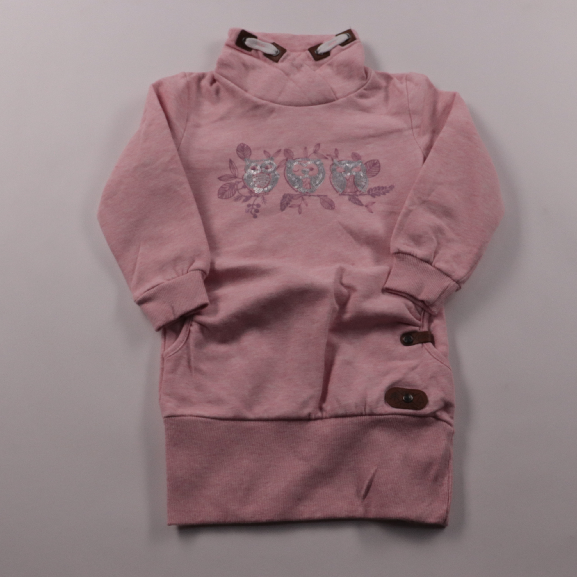 Розовая толстовка Topolino с высоким воротом и принтом сов с блёстками. Подойдёт для прогулок и садика в прохладную погоду, хорошо сочетается с джинсами и леггинсами. Мягкий трикотаж с добавлением полиэстера практичен в носке и проще в уходе.