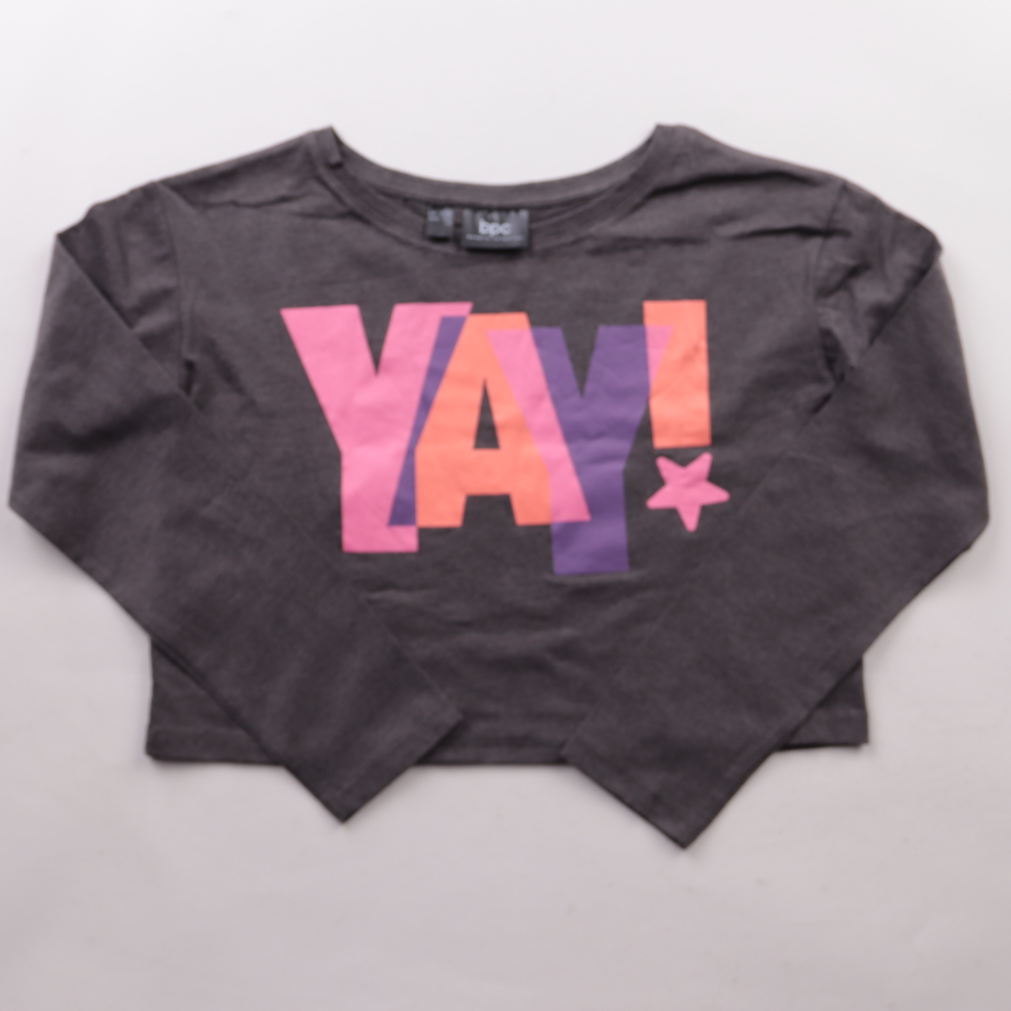 Толстовка Bpc (bonprix collection) серого цвета с ярким принтом «YAY!» и длинным рукавом. Подойдёт девочке на каждый день — в школу, на прогулку или для дома. Мягкий смесовый трикотаж прост в уходе и хорошо держит форму.