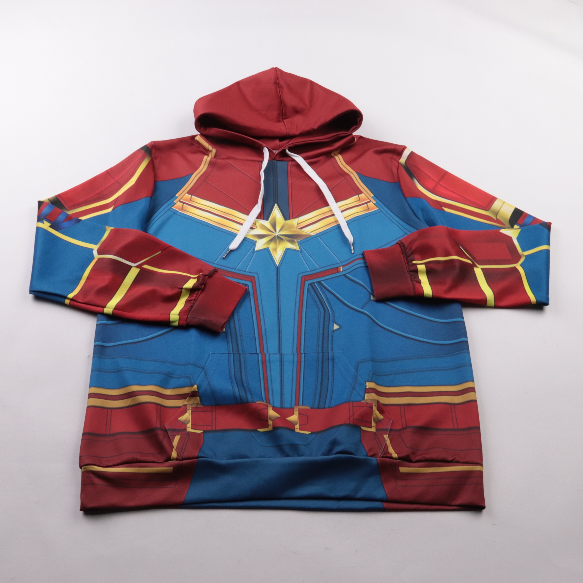 Толстовка с капюшоном с ярким принтом в стиле супергеройского костюма, без указания бренда. Подойдёт для повседневной носки и прогулок в прохладную погоду, удобно надевать на футболку. Спереди есть карман-кенгуру, состав: 92%-полиэстер, 8%-спандекс.