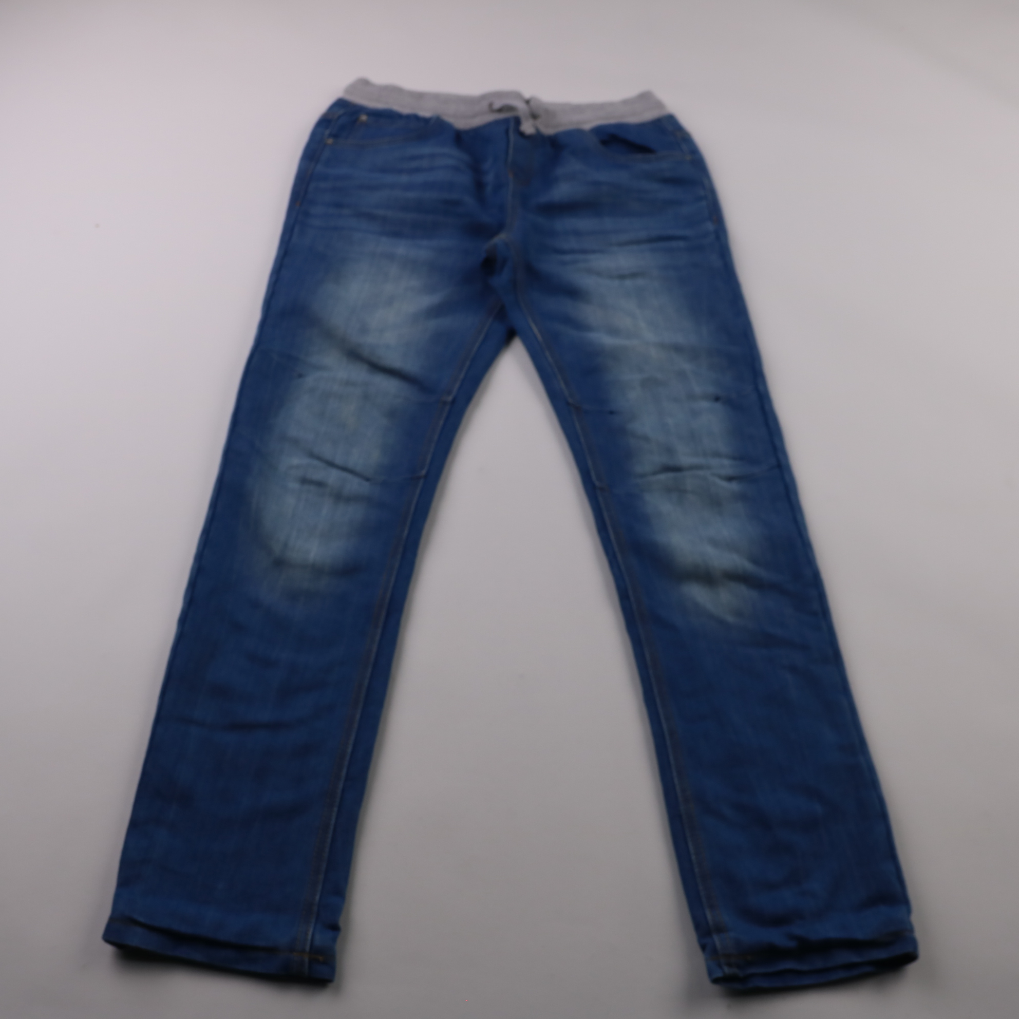 Джинсы Chapter Young синего цвета с лёгкими потёртостями и трикотажным поясом на шнурке. Подойдут мальчику на каждый день, в школу или на прогулки в любое время года. Пояс на кулиске помогает удобно посадить по талии и не давит.