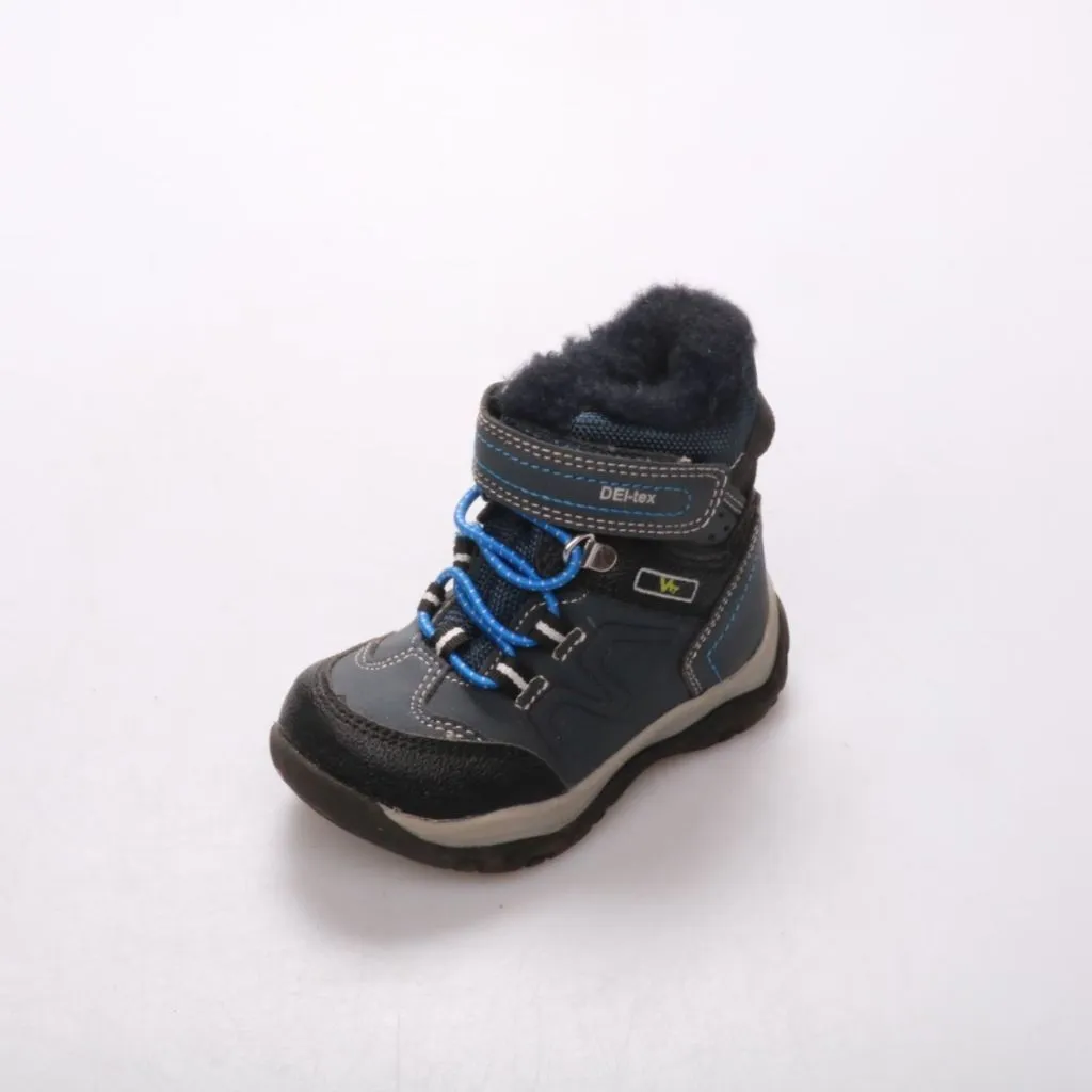 Зимние полусапоги DEI-tex для мальчика, с тёплой меховой подкладкой и шнуровкой плюс ремешком на липучке. Подойдут для повседневной носки зимой и прогулок в холодную погоду. Рельефная подошва с вставками помогает увереннее держаться на скользкой поверх...