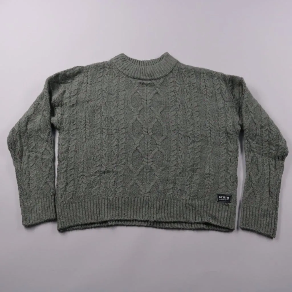Вязаный свитер Denim спокойного зелёно-серого оттенка с рельефным узором «косы» и круглым горлом. Подойдёт для школы, прогулок и поездок в прохладную погоду, удобно носить как самостоятельный слой или под куртку. Плотная вязка хорошо сохраняет тепло и ...