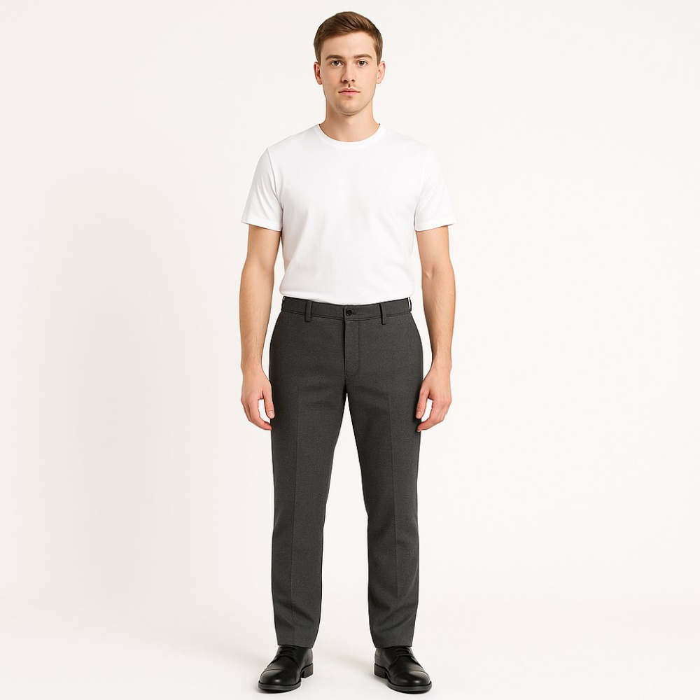 Мужские классические брюки Matalan тёмно-серого цвета с аккуратной посадкой и стрелками. Подойдут для офиса, собеседований и мероприятий, легко сочетаются с рубашкой или футболкой. Практичная ткань с полиэстером меньше мнётся и проста в уходе.