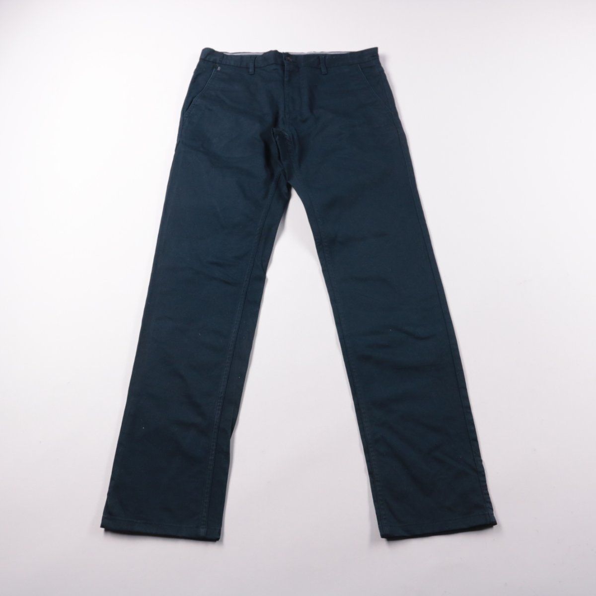 Мужские брюки Zara Man Basic Collection тёмно-синего цвета, прямой посадки. Подойдут для офиса и повседневных образов с рубашкой или футболкой. Плотная ткань хорошо держит форму и не требует сложного ухода.