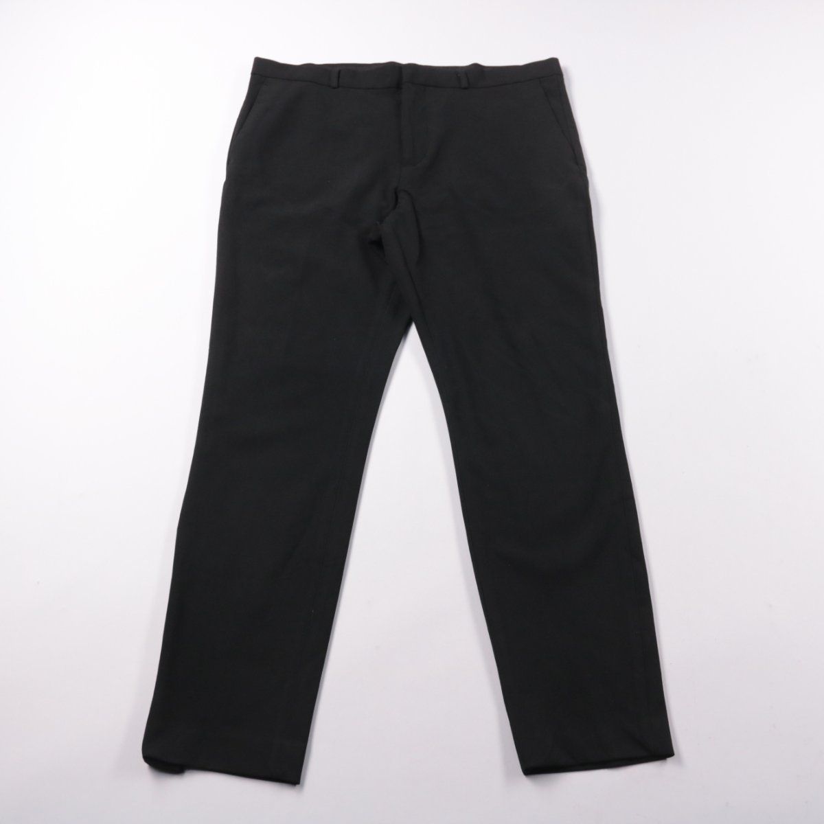 Мужские классические брюки H&M чёрного цвета, прямого кроя со стрелками и боковыми карманами. Подойдут для офиса, деловых встреч и торжественных мероприятий, легко сочетаются с рубашкой и пиджаком. Ткань с добавлением эластана комфортнее в движении и меньше мнётся.