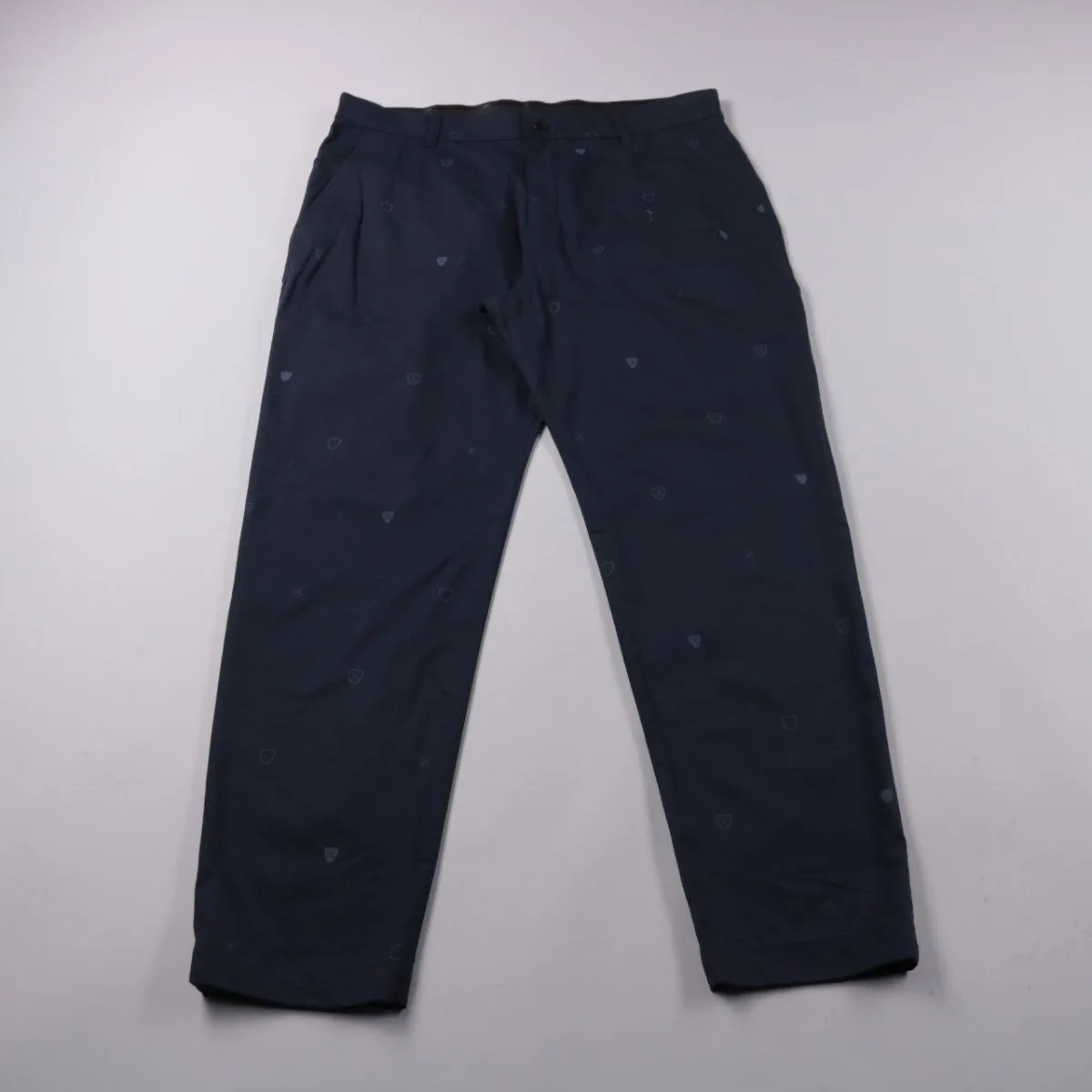 Мужские брюки Nike Dri-FIT тёмно-синего цвета с мелким принтом. Подойдут для повседневной носки и поездок, а также для активного дня благодаря влагоотводящей ткани. Практичны тем, что быстро сохнут и меньше мнутся.