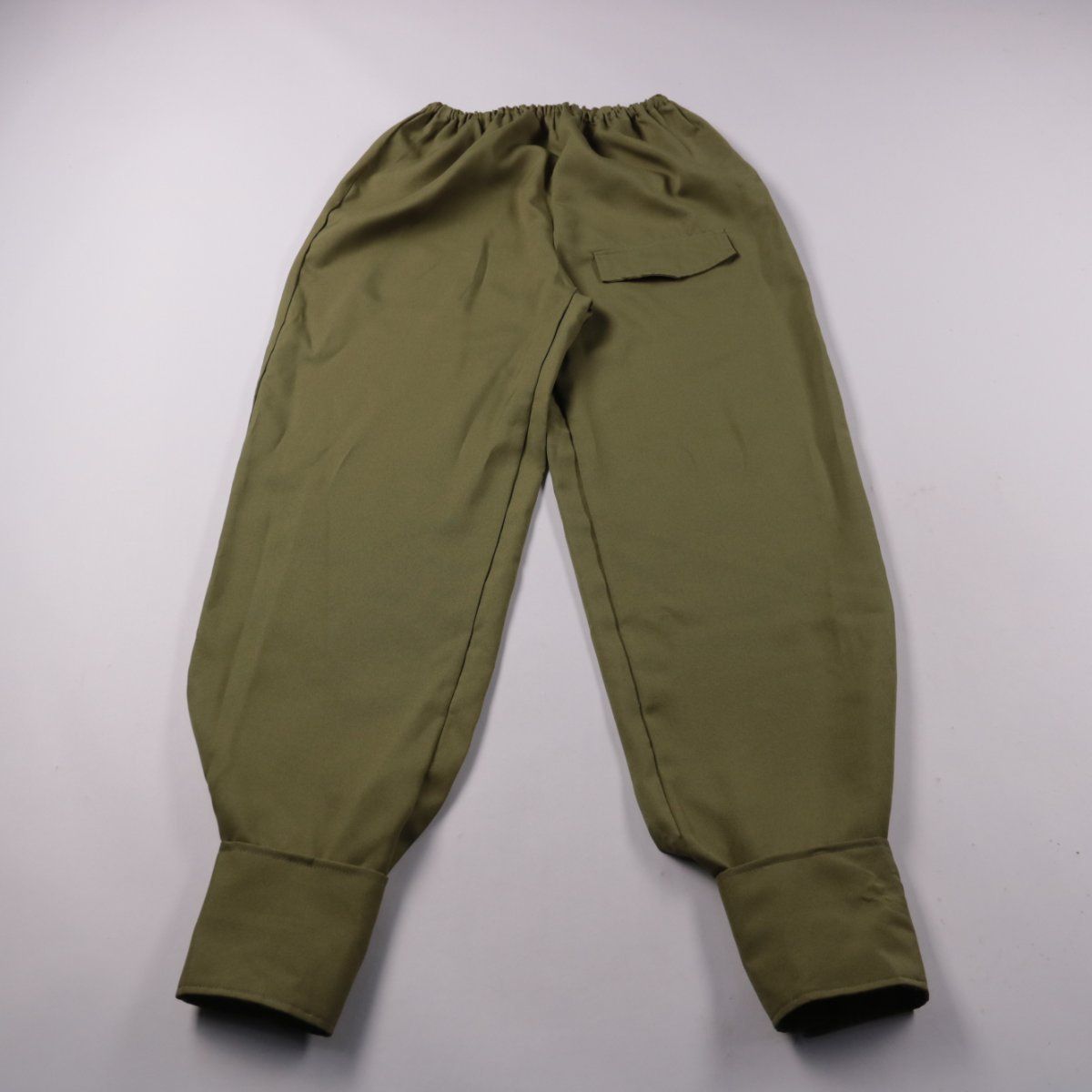 Брюки цвета хаки из полиэстера с эластичным поясом и манжетами по низу. Подойдут для повседневной носки и прогулок в прохладную погоду, есть задний карман с клапаном. Практичны в уходе и быстро сохнут.