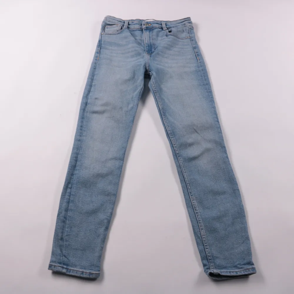 Джинсы Zara светло-голубого цвета из хлопкового денима с добавлением эластичных волокон. Подойдут на каждый день и для casual-образов с кедами или ботинками. Материал тянется и комфортно сидит в движении.