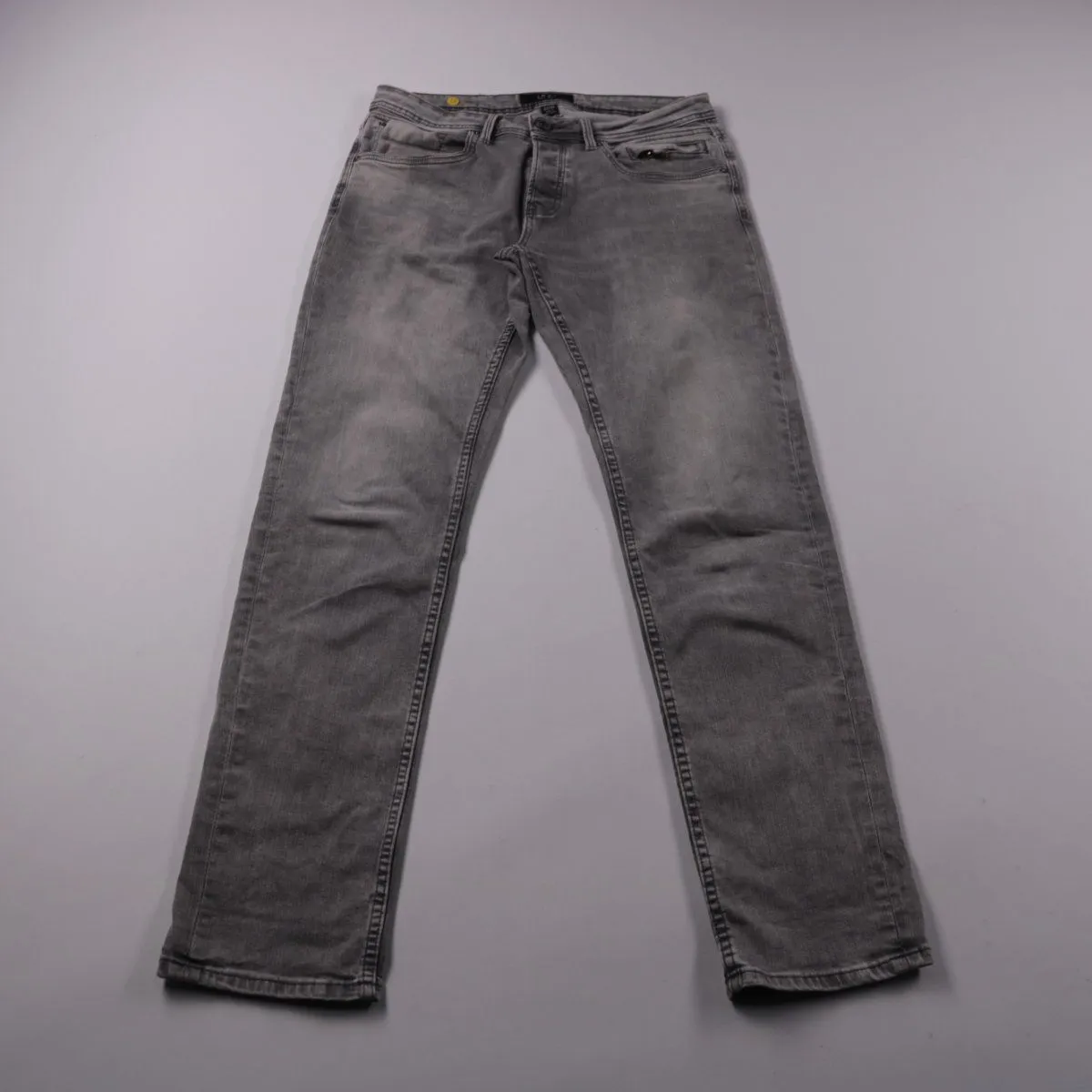 Мужские джинсы Smog серого цвета, размер на бирке 32/34. Подойдут для повседневной носки и городских образов, прямой крой легко сочетается с футболками и рубашками. Плотный хлопковый деним с добавлением эластана обеспечивает более комфортную посадку.