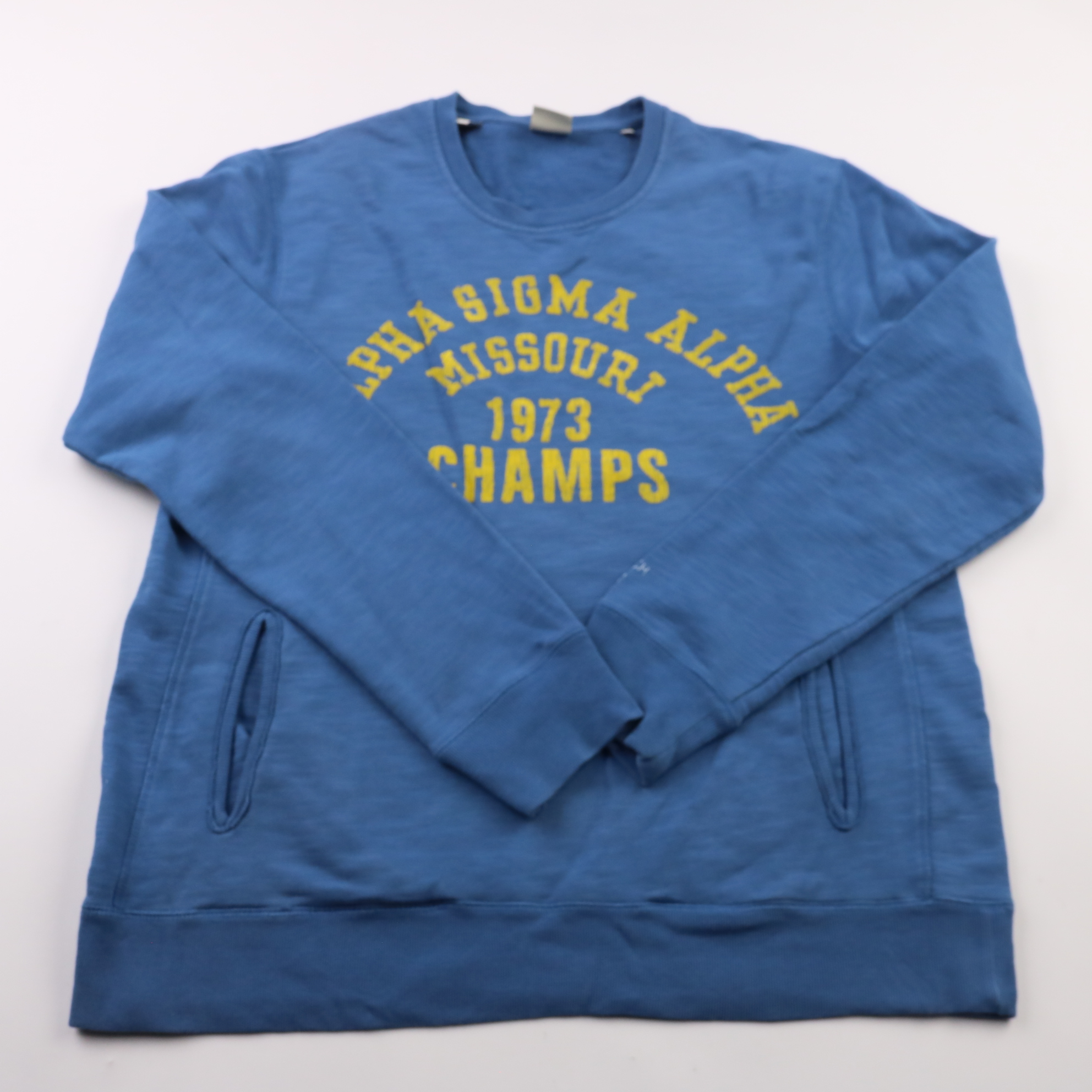 Мужской свитшот Scotch & Soda синего цвета с принтом на груди и удобными боковыми карманами. Подойдёт для повседневной носки и прогулок в прохладную погоду. Плотный хлопок приятен к телу и хорошо держит форму.