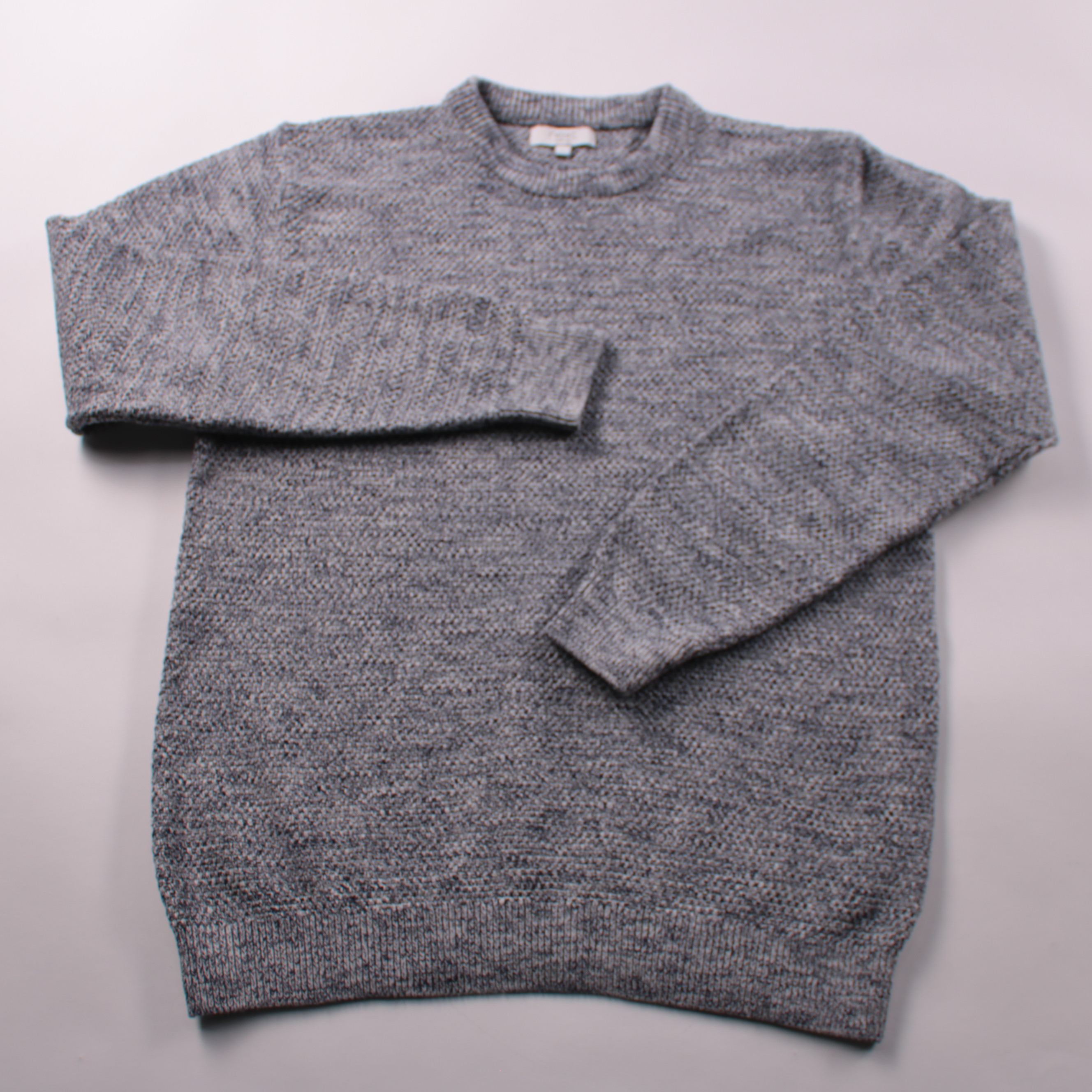 Мужской джемпер Next серого меланжевого цвета с круглым вырезом и мягкой вязаной фактурой. Подойдёт для повседневных образов в прохладную погоду и как слой под куртку или пальто. Практичен в уходе: 100% хлопок, можно стирать в машинке.