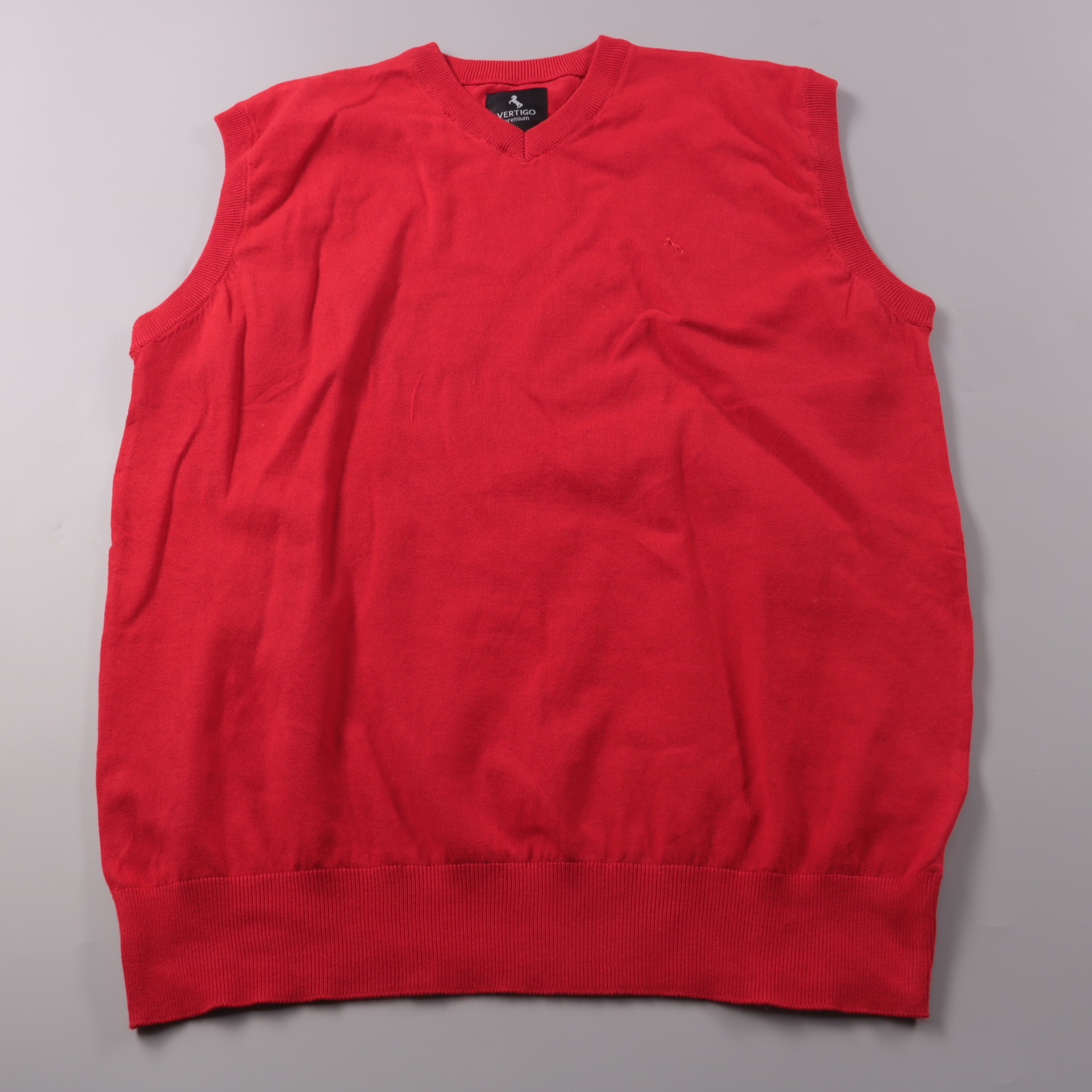 Мужской трикотажный жилет Vertigo Premium красного цвета с V-образным вырезом. Подойдёт для офиса и повседневных образов поверх рубашки или футболки в прохладную погоду. Хлопковая основа в составе приятна к телу и лучше дышит.