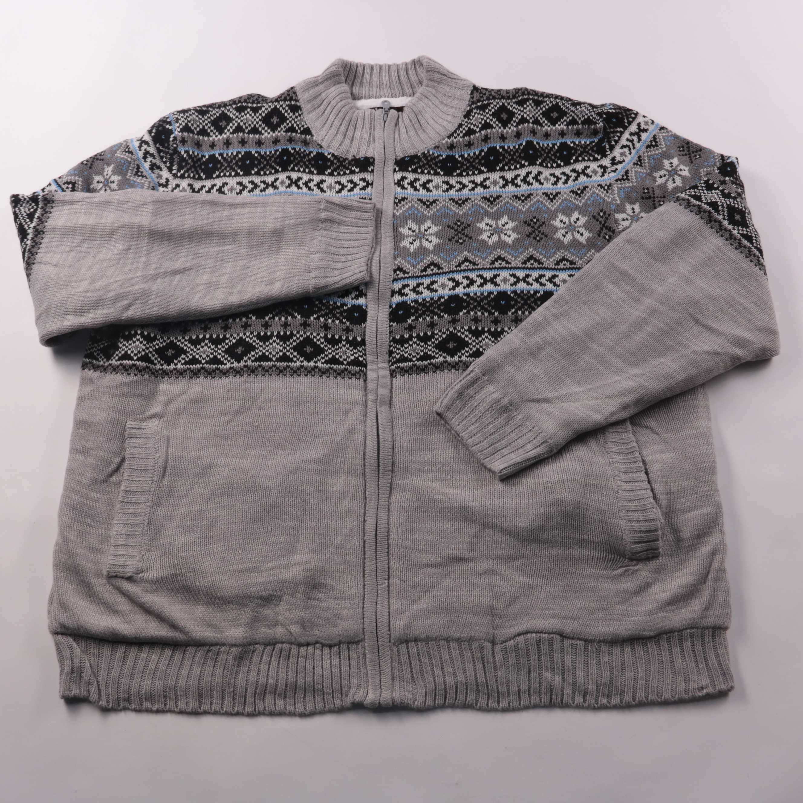 Серый с чёрно-бело-голубым жаккардовым узором