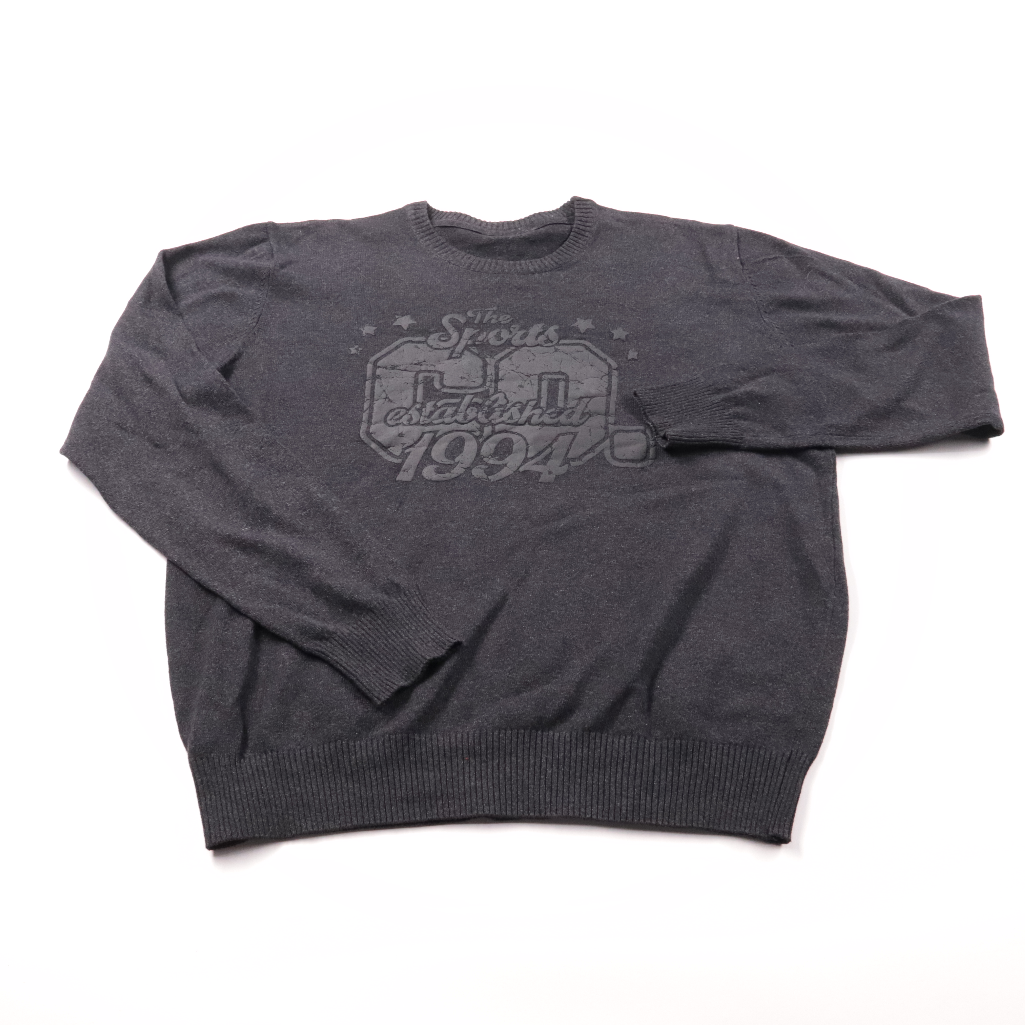Мужской свитшот тёмно-серого цвета с круглым вырезом и мягкой трикотажной резинкой по низу и манжетам. На груди есть ненавязчивый принт “The Skates established 1994”, подойдёт для повседневной носки и прогулок в прохладную погоду. Практичен тем, что ле...