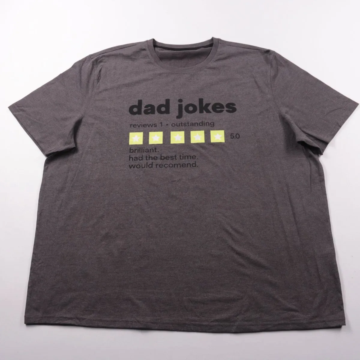 Мужская футболка George серого цвета с принтом «dad jokes» и рейтингом. Подойдёт для повседневной носки и дома, когда хочется простую вещь с юмором. Материал смесовый, поэтому ткань более износостойкая и меньше мнётся.