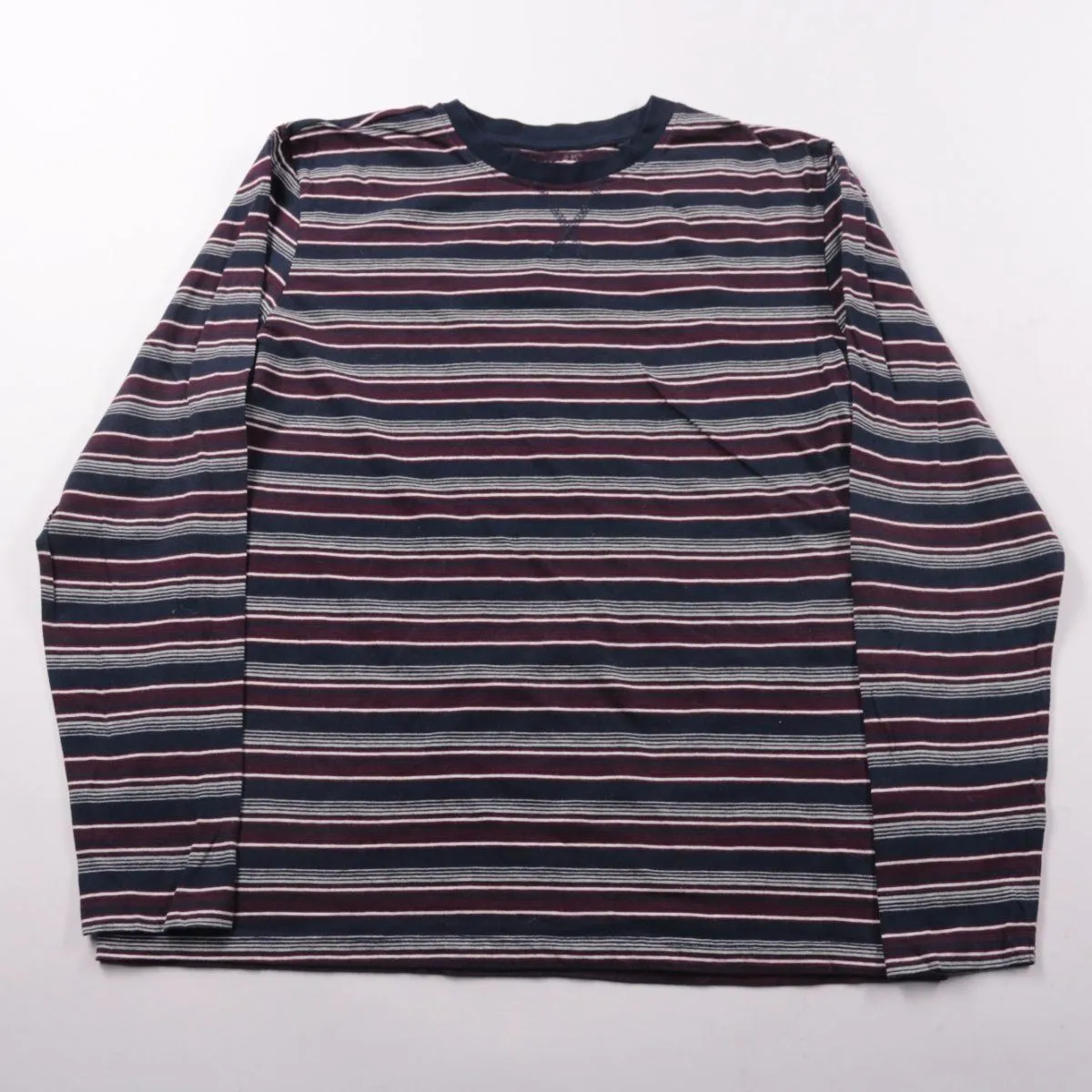 Мужской лонгслив Primark в полоску, с круглым вырезом и длинным рукавом. Подойдёт для повседневной носки и как базовый слой под куртку/жилет. Практичен в уходе и легко сочетается с джинсами и брюками.