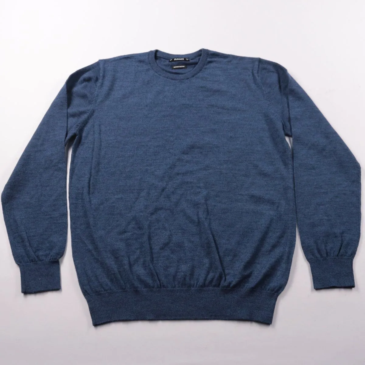 Мужской джемпер Dunnes Merino Blend синего цвета с круглым вырезом. Подойдёт для офиса и повседневной носки в прохладную погоду, хорошо смотрится как самостоятельный слой или под куртку. Смесовая пряжа с мериносовой шерстью приятна к телу и проще в уходе.