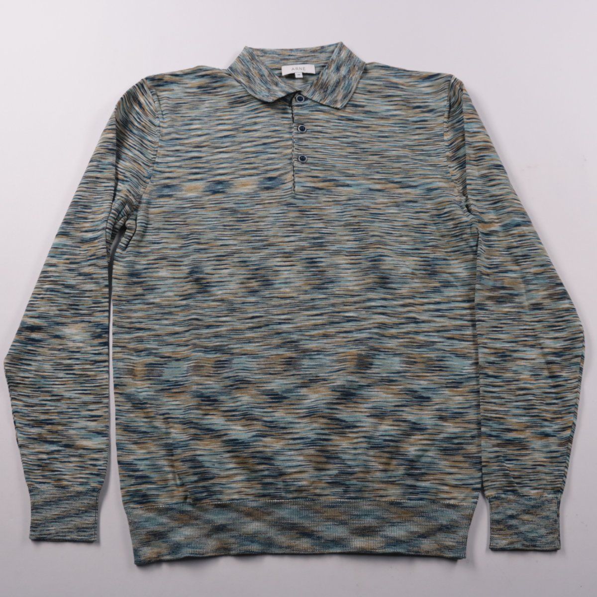 Мужское поло ARNE с длинным рукавом и воротником на пуговицах, выполнено из хлопка. Меланжевый рисунок в серо-голубых тонах подойдёт для повседневных образов и офисного casual. Хлопковая ткань комфортна в носке и хорошо дышит.
