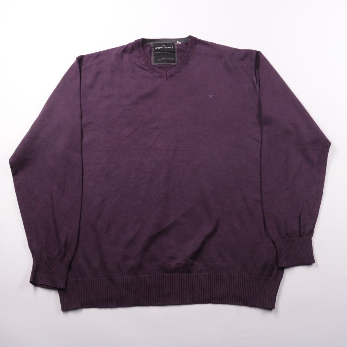 Мужской джемпер Angelo Litrico тёмно-фиолетового цвета с V-образным вырезом и эластичными манжетами/низом. Подойдёт для повседневной носки и офисных образов в прохладную погоду, удобно носить слоем под куртку. Хлопковый материал хорошо дышит и комфортен при длительной носке.