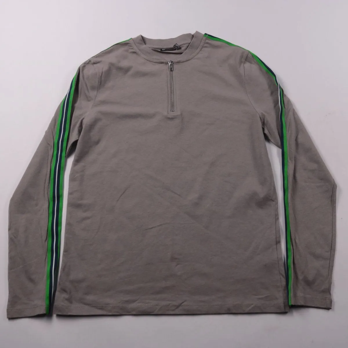 Мужская кофта ASOS DESIGN серого цвета с короткой молнией у горловины и лампасами на рукавах. Подойдёт для повседневной носки в прохладную погоду и как слой под куртку. Натуральный хлопок хорошо пропускает воздух и комфортен в носке.