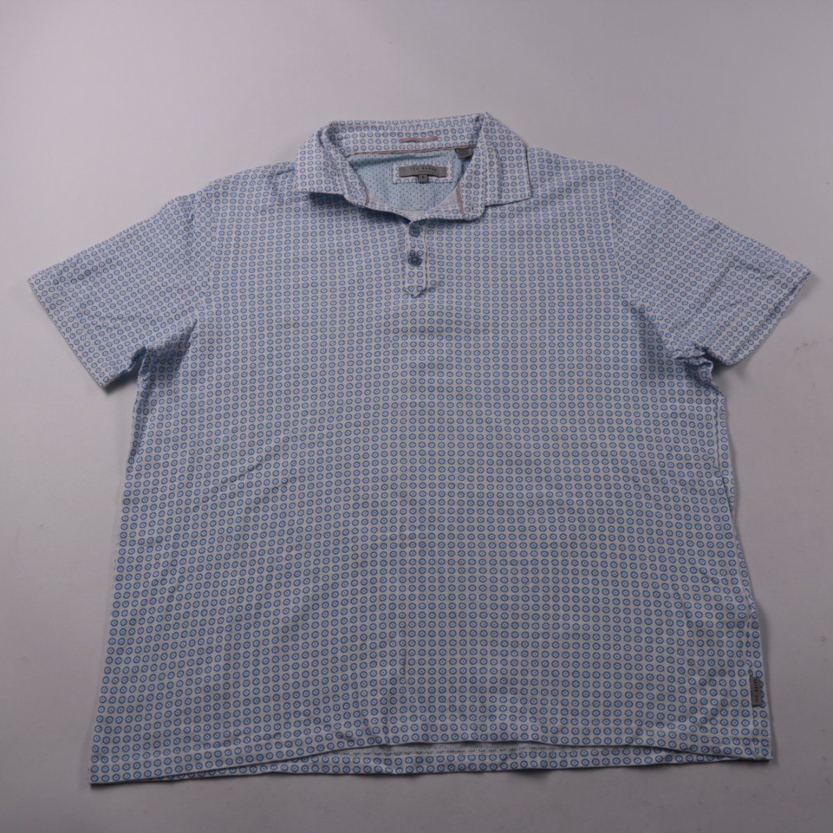 Мужское поло Ted Baker из хлопка с мелким голубым принтом. Подойдёт для повседневной носки летом и в тёплую погоду. Натуральная ткань хорошо дышит и комфортна в носке.
