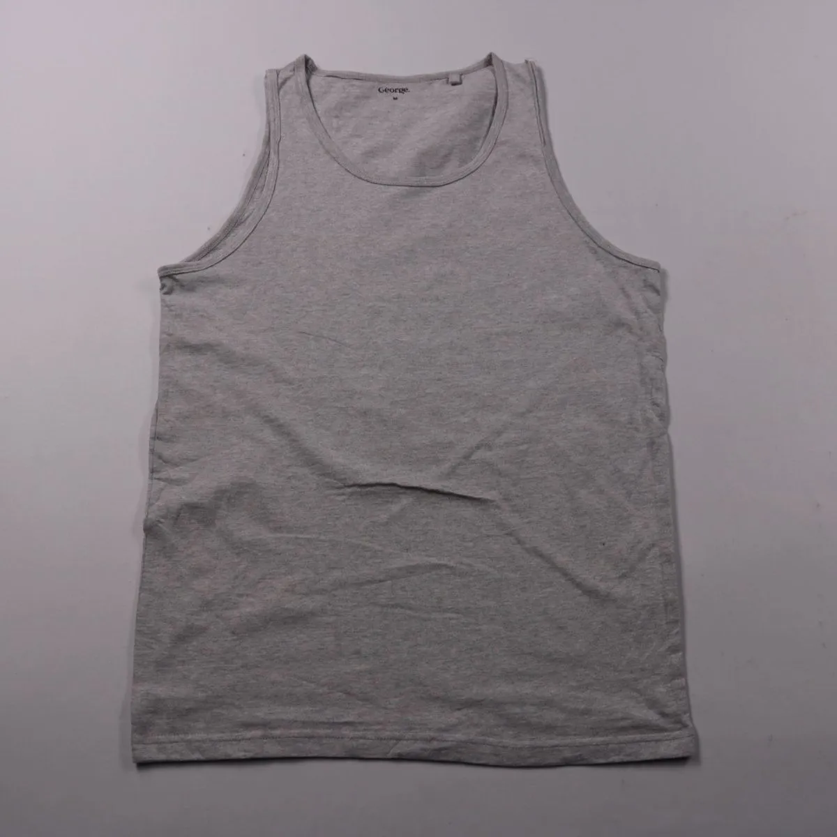 Мужская майка George серого меланжа, без принта, с круглым вырезом. Подойдёт как нижний слой на каждый день или для дома/спорта. Натуральный хлопок хорошо пропускает воздух и комфортен к телу.