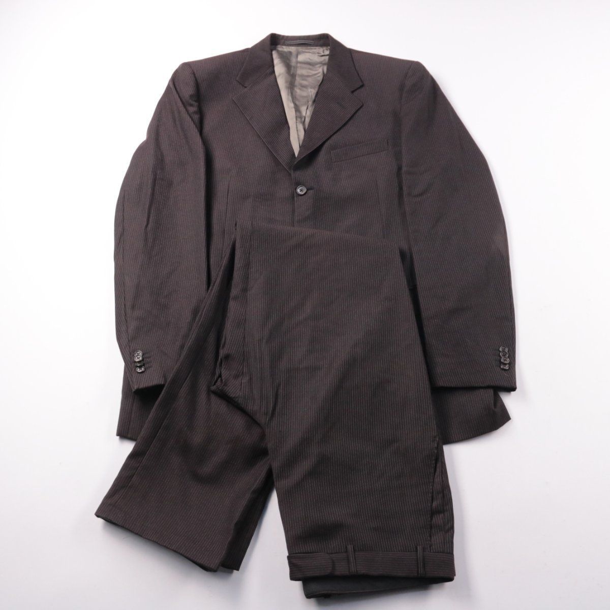 Мужской костюм в тонкую полоску из шерсти Super 100’s (virgin wool extrafine) с подкладкой, подходит для офиса и деловых встреч. Модель с классическим пиджаком на пуговицах и брюками со стрелками. Практичный вариант: шерсть хорошо держит форму и выглядит аккуратно в течение дня.