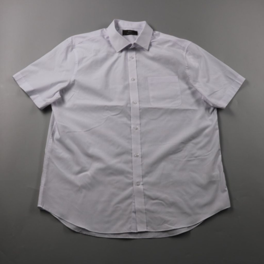 Мужская рубашка M&S Regular Fit белого цвета с коротким рукавом и нагрудным карманом. Подойдёт для офиса, школы и торжественных случаев, легко сочетается с брюками и джинсами. Практичный плюс — ткань с полиэстером меньше мнётся и проще в уходе.