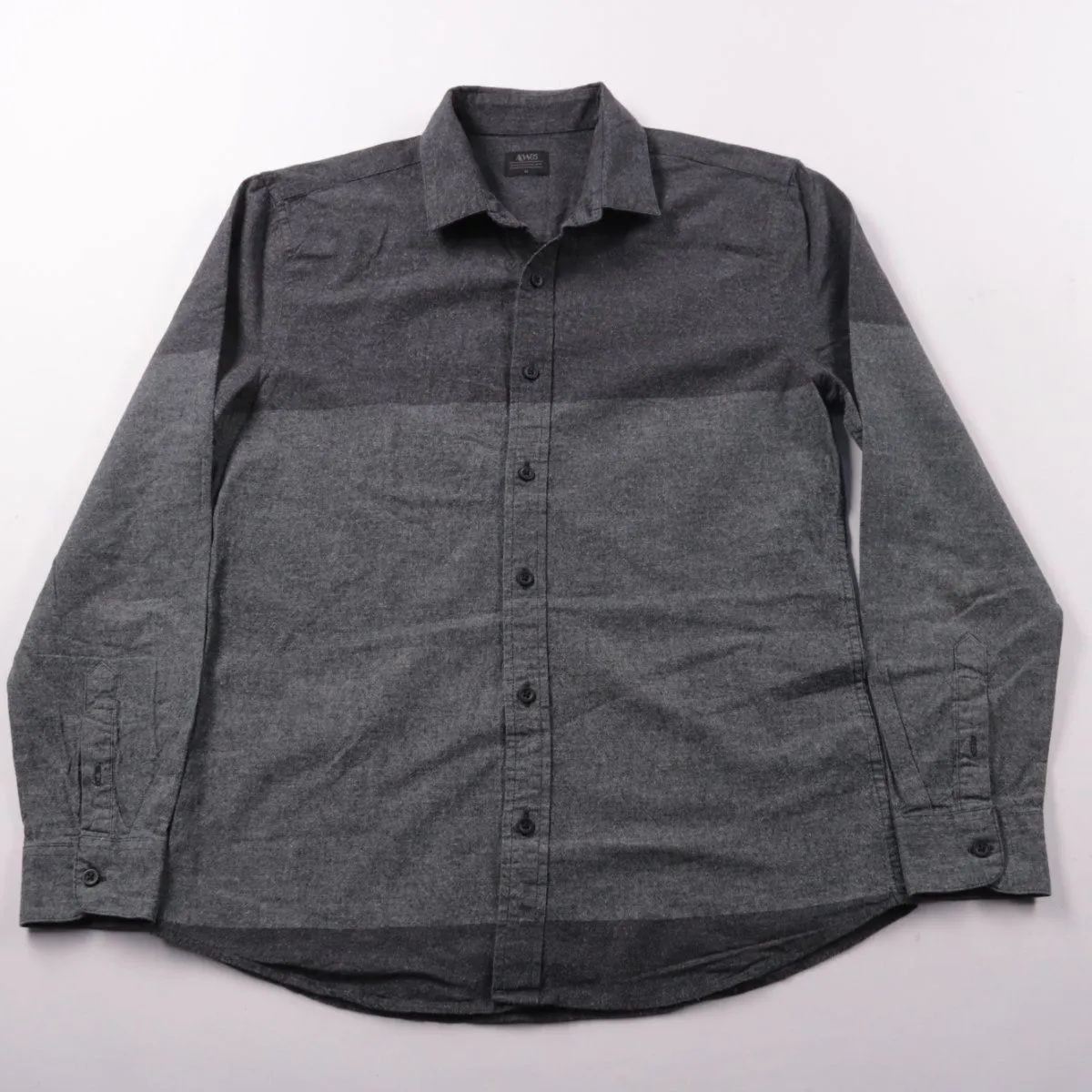 Мужская рубашка AW85 из 100% хлопка, серого (графитового) меланжа, на пуговицах с отложным воротником. Подойдёт для офиса в стиле casual и на каждый день в прохладную погоду. Хлопковая ткань хорошо дышит и комфортна в носке.