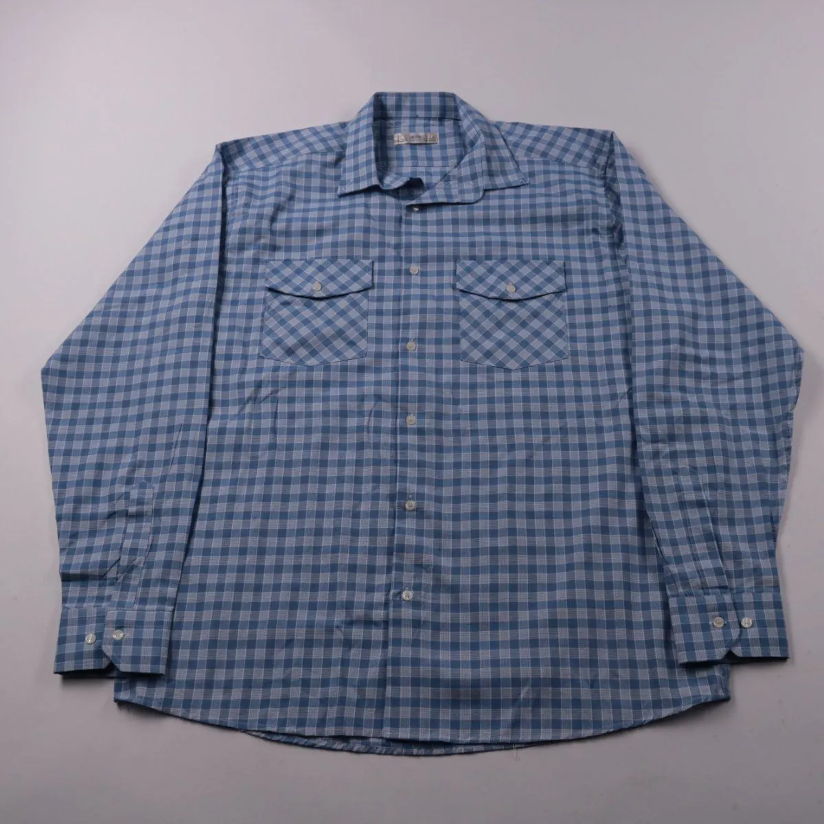 Мужская рубашка GALLERAS classic в голубую клетку, на пуговицах, с двумя нагрудными карманами с клапанами. Подойдёт для повседневной носки и офисного casual-образа, хорошо сочетается с джинсами и чиносами. Практична тем, что плотная ткань и карманы удобны для мелочей.