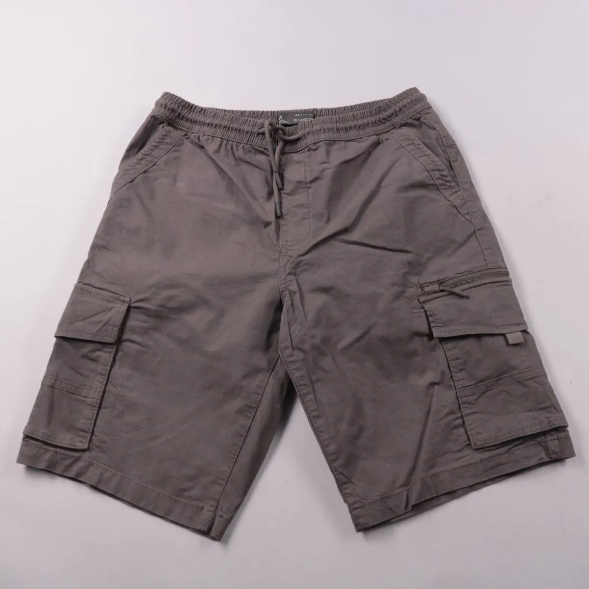 Мужские шорты-карго Denim Co relaxed fit серого цвета с эластичным поясом и шнурком. Подойдут для повседневной носки и прогулок в тёплую погоду благодаря свободной посадке. Практичны за счёт вместительных боковых карманов с клапанами.